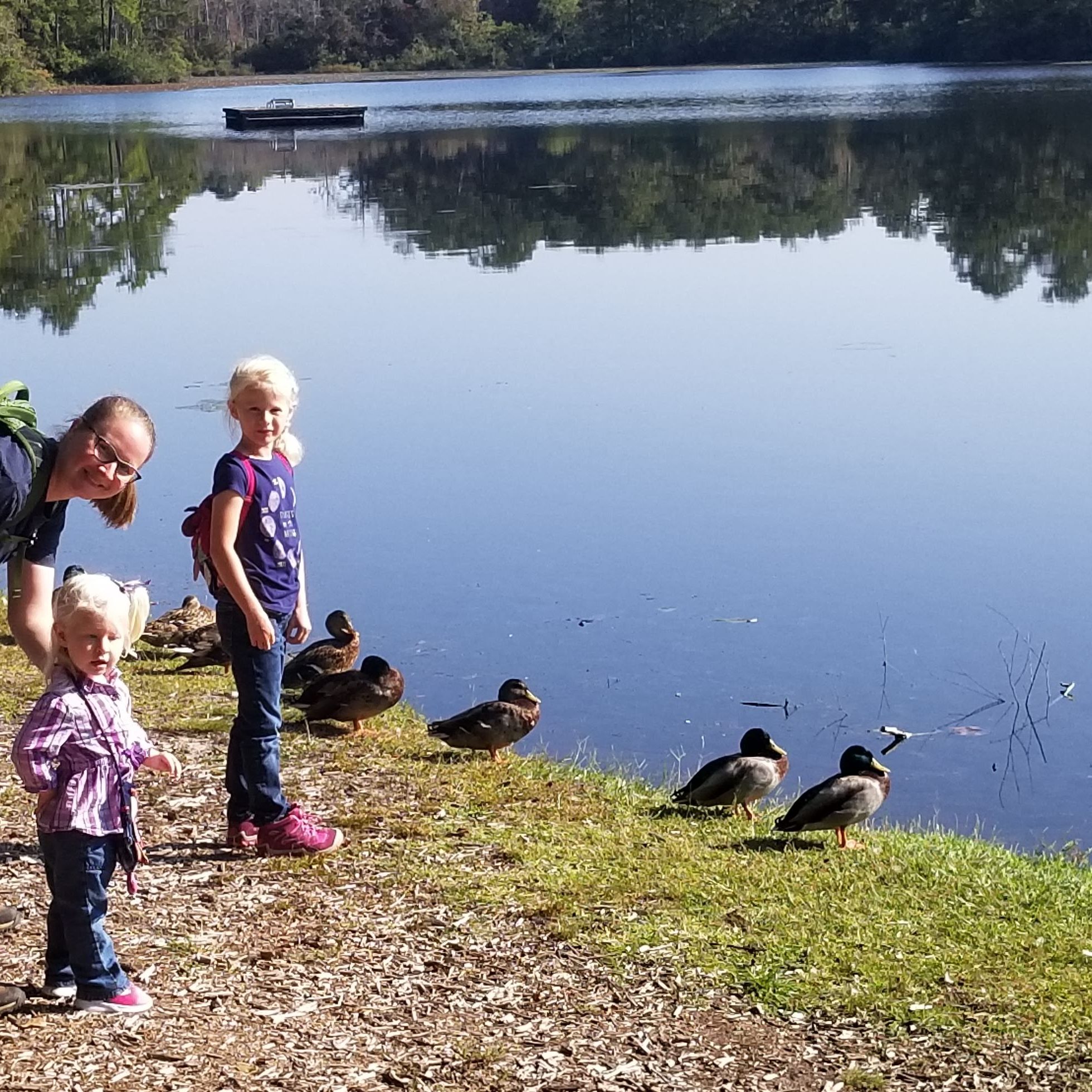Our first visit to Sesqui, we walked along the short nature trail, found some ducks, and didn’t find a geocache (that later was reported to be missing). But not all was lost…in our search for the geocache, we found a box turtle. 🙂 There is a great lake that I’m sure people have fun canoeing/kayaking in. It’s also quite evident from the soil that you’re in the Sandhills! Much different than the red clay in the Upstate.