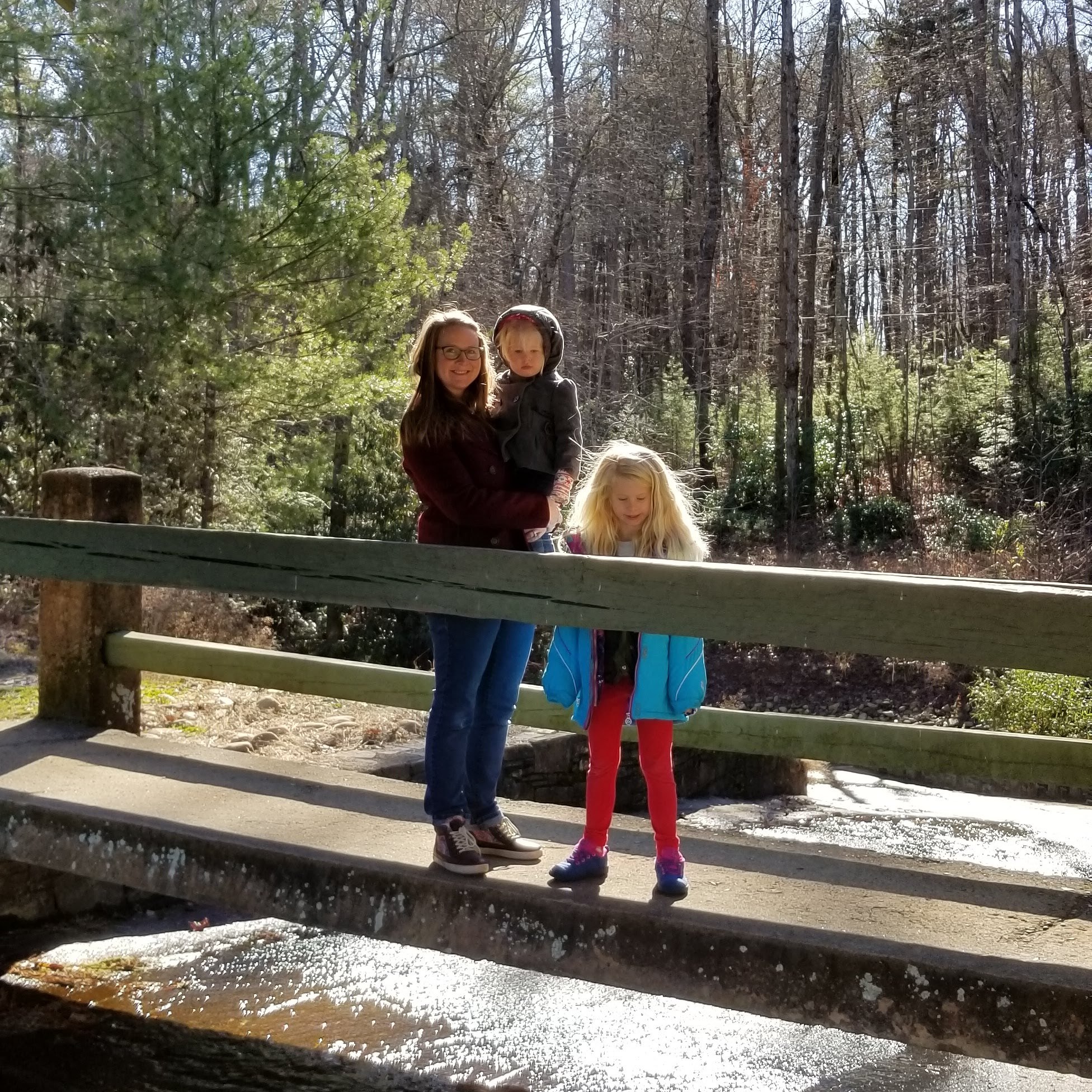 My mom (whom the kids call Bunny) lives up above Walhalla, the county seat of Oconee County. From her house, it’s a quick 15-min. drive up to Oconee State Park. Bunny had gifted Teagan a Junior Ranger vest for Christmas, so we had to go try it out.