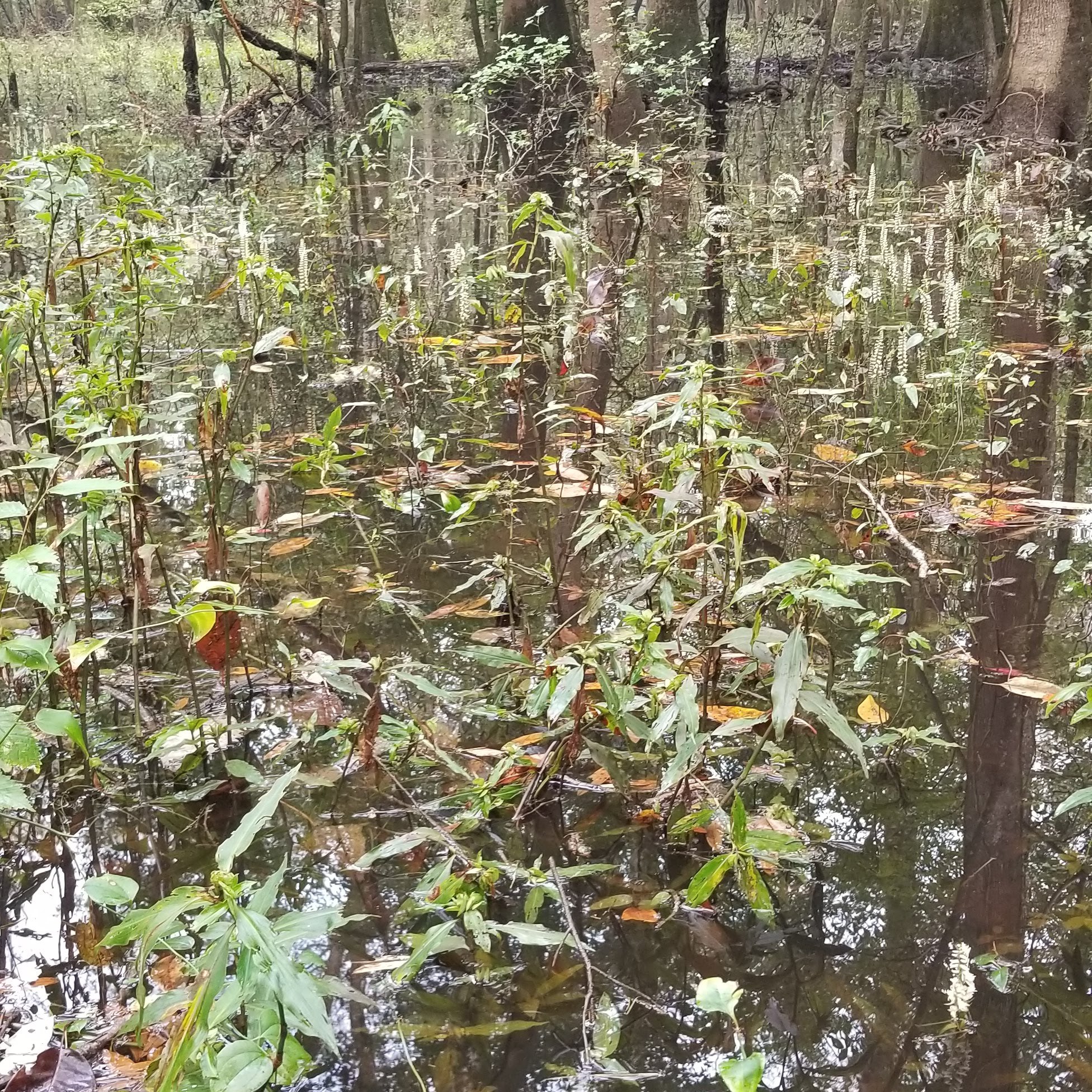 Because the park is located within the floodplain, we’ve been here when the lower boardwalk was completely submerged and inaccessible. Today, there was some visible water, but it has been very dry recently.