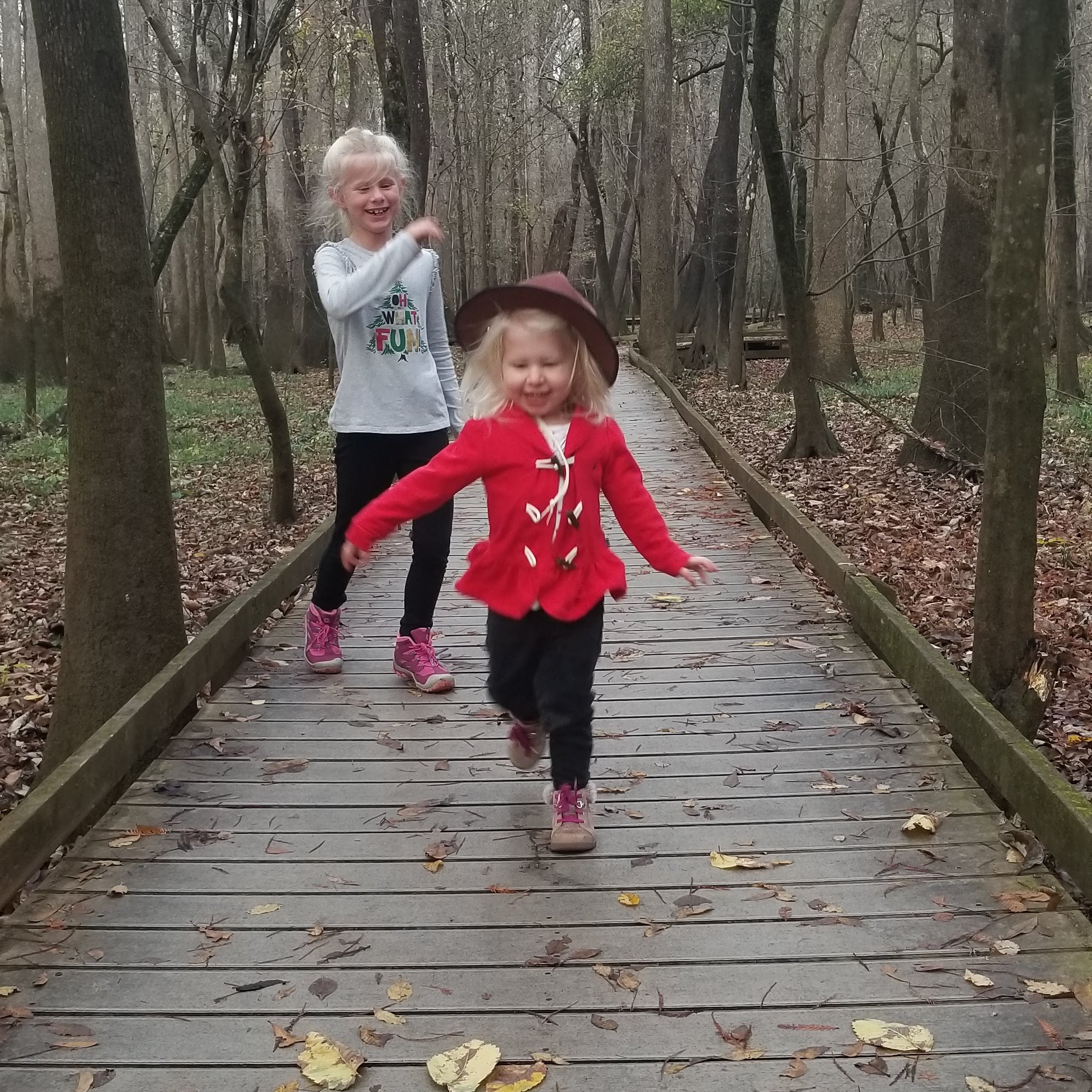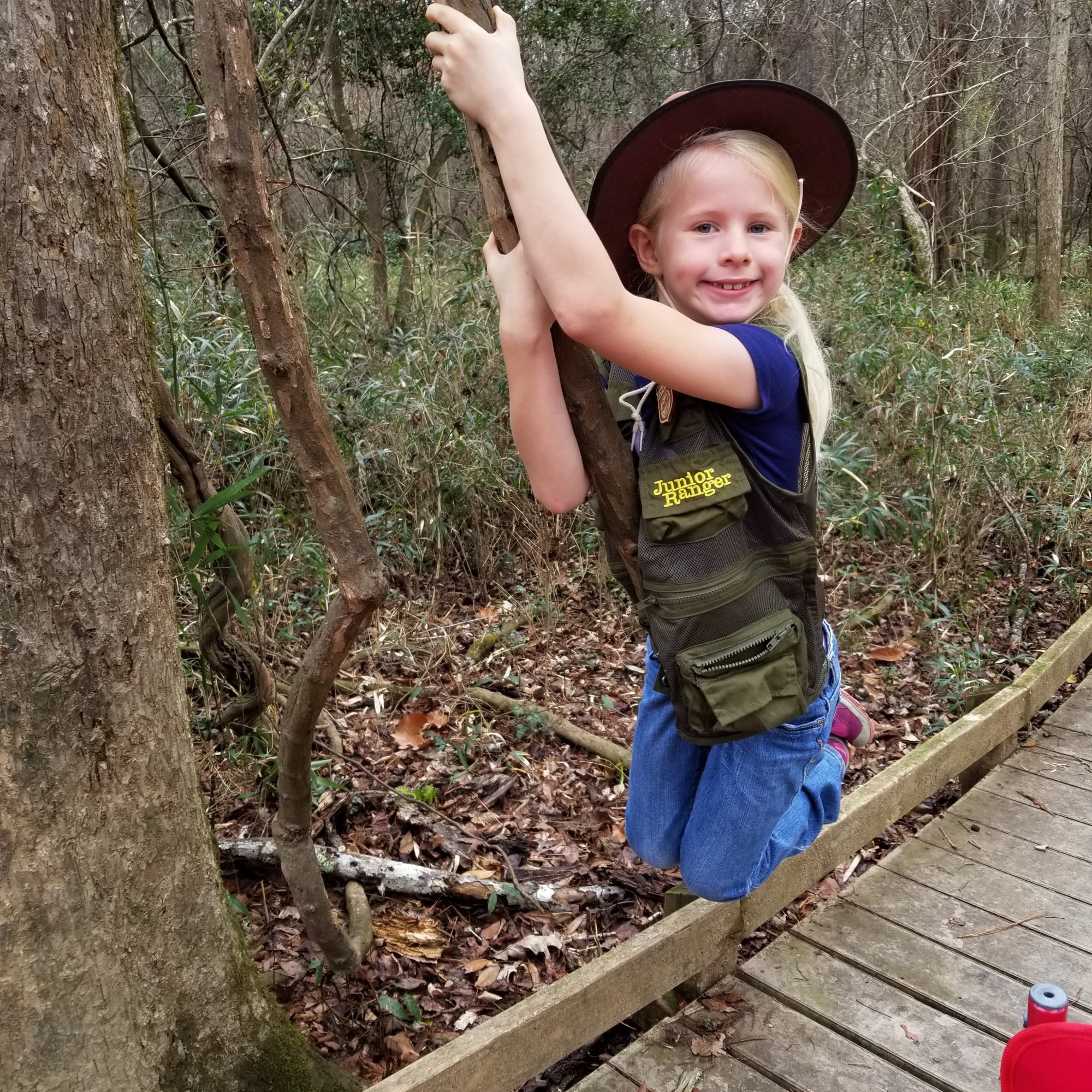 We came to the park today to take advantage of the First Day Hike that the park put on. Teagan sported her new Junior Ranger vest (thanks to a Christmas present from her grandma) and hat (thanks to the SC State Park Junior Ranger program). Teagan had completed the Junior Ranger booklet back in 2021, so she also had that badge proudly displayed on her vest, and she also got to put her first stamps in her Junior Ranger Passport. The attendant in the visitor’s center even gave Sage her own Junior Ranger badge today, and as soon as she’s a little older, I know she’ll be completing activities on her own!