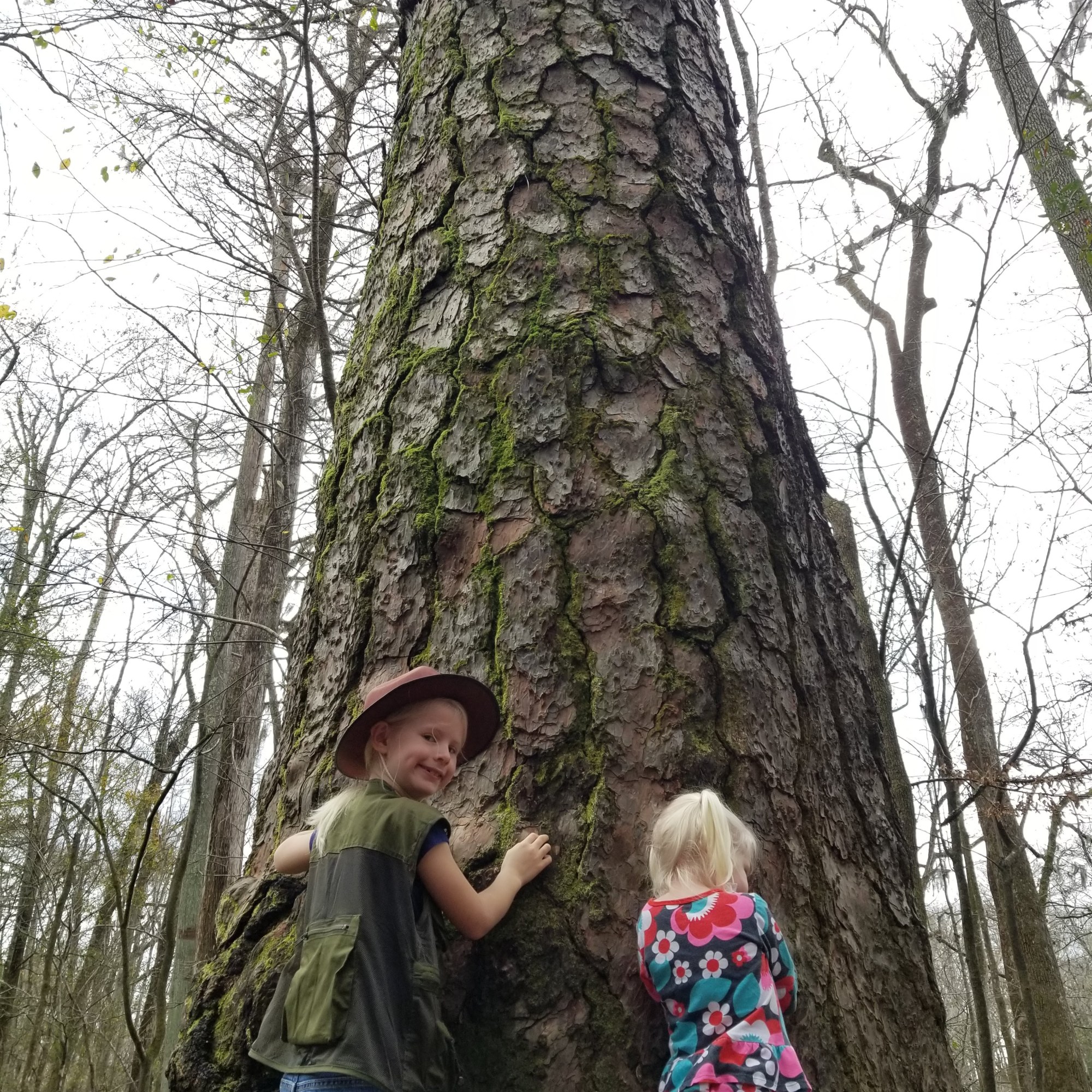 On the hike today, a park volunteer took us around the Boardwalk Loop. We stopped for a picture at one of the largest loblolly pine trees (near Weston Lake). We also learned about beech trees and how they don’t lose their brown leaves until the new ones emerge, as well as how the beech nut itself was ground for various purposes. Also, we learned that the famed bald cypress trees are called ‘bald’ because they do drop their needles.