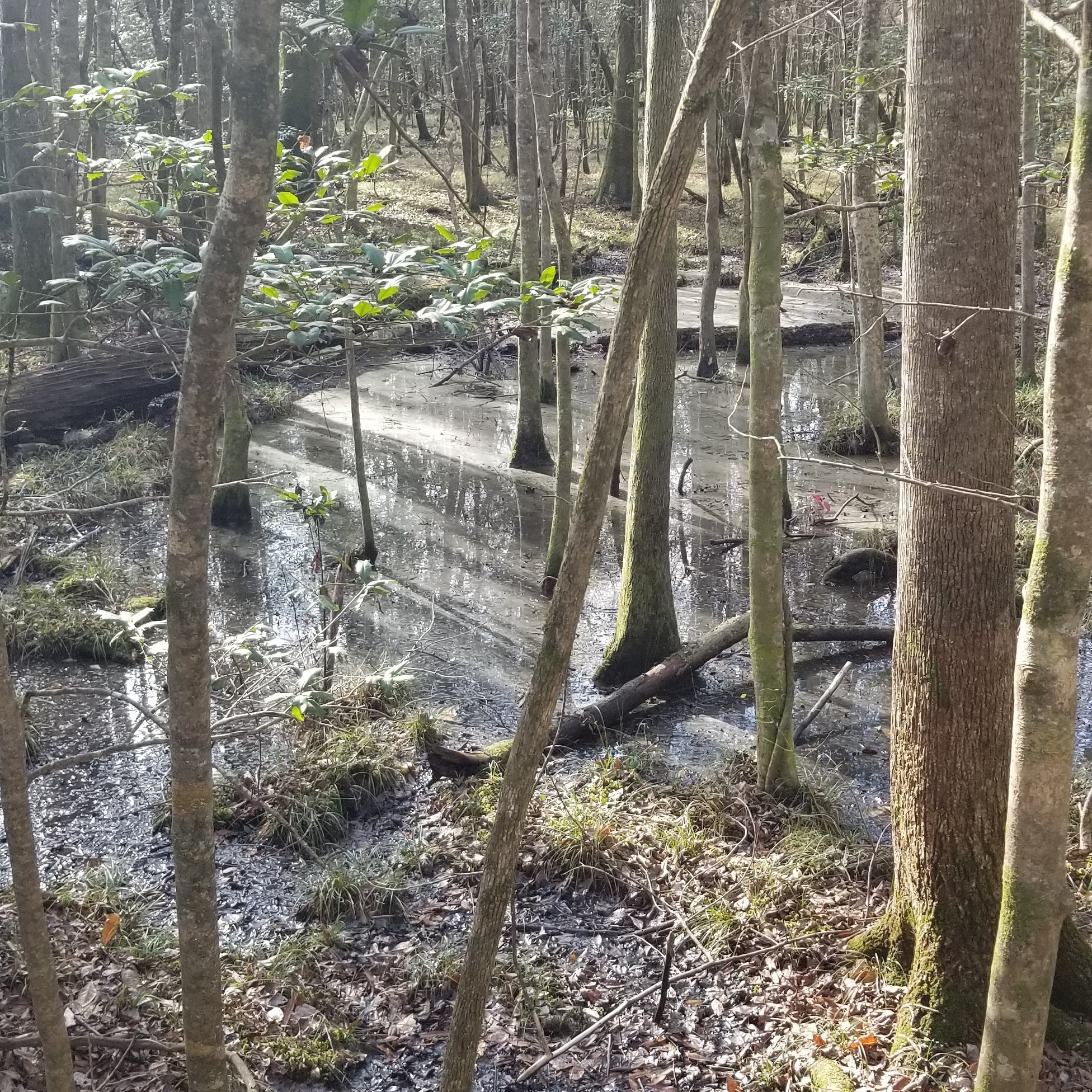 No snakes today, though we did see a couple of large pileated woodpeckers. And though it was about 70 degrees on this way-too-muggy-to-be-January day, no mosquitoes could be found thankfully! In previous visits, we’ve seen red-bellied water snakes, some kind of owl, deer, a fox squirrel, various wading birds, and other wildlife. Hopefully at some point we’ll see otters! (And hopefully we won’t ever run into the wild pigs.)