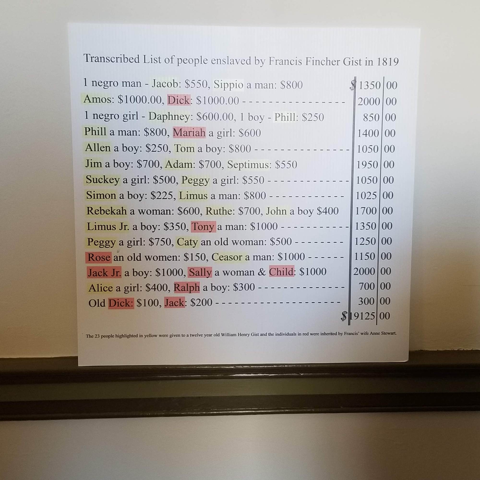 One thing I appreciated most about the tour was the attempt to bring dignity, honor, and personhood back to those that for so long were treated as ‘other’, sub-human, or inferior, simply because of their color. On the 1860 census, slaves were just indicated by their owner’s name, along with their age, sex, and race. But we stood there next to the ‘witness trees’ (so called because they are more than 200 years old and have ‘witnessed’ all that has gone on there) and passed around a list of names, each person speaking one. These names, gathered from another source, were the names of the first group of slaves at the plantation.