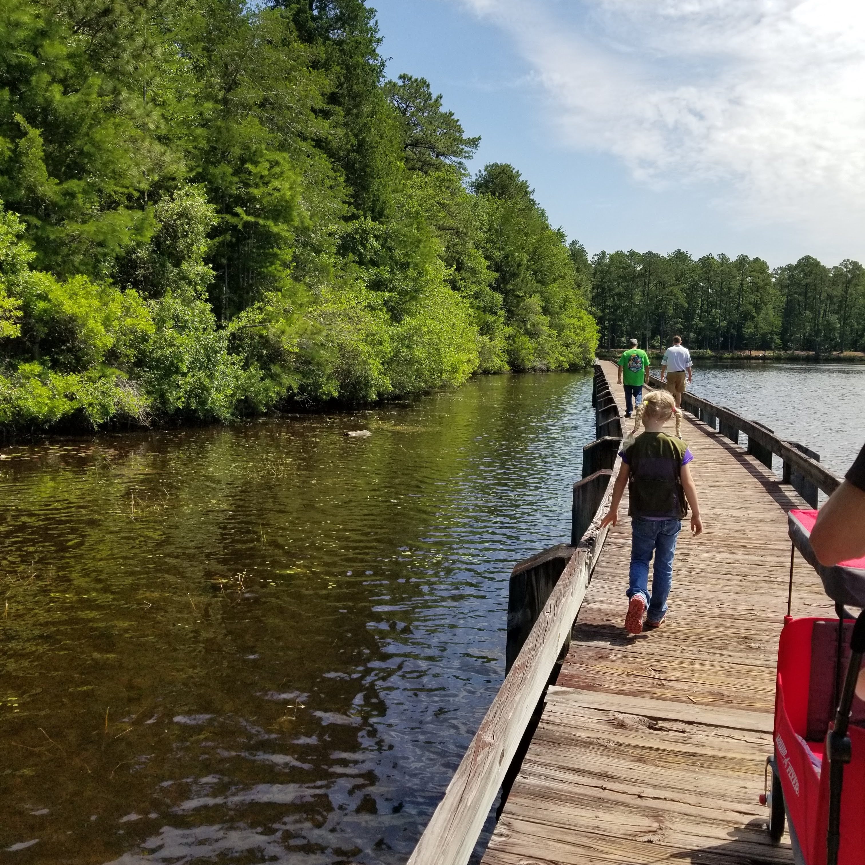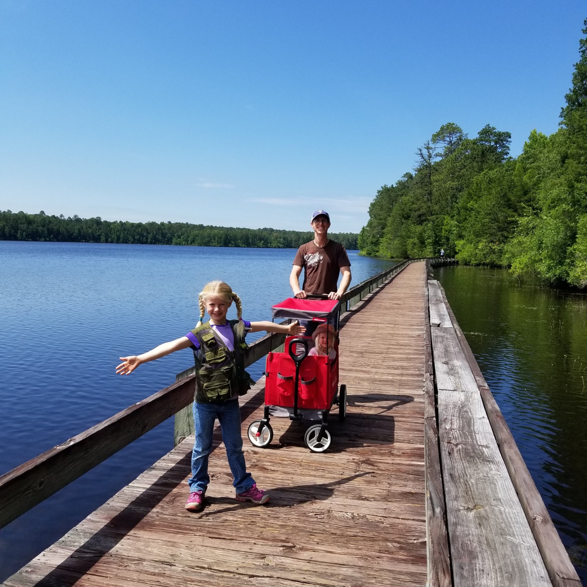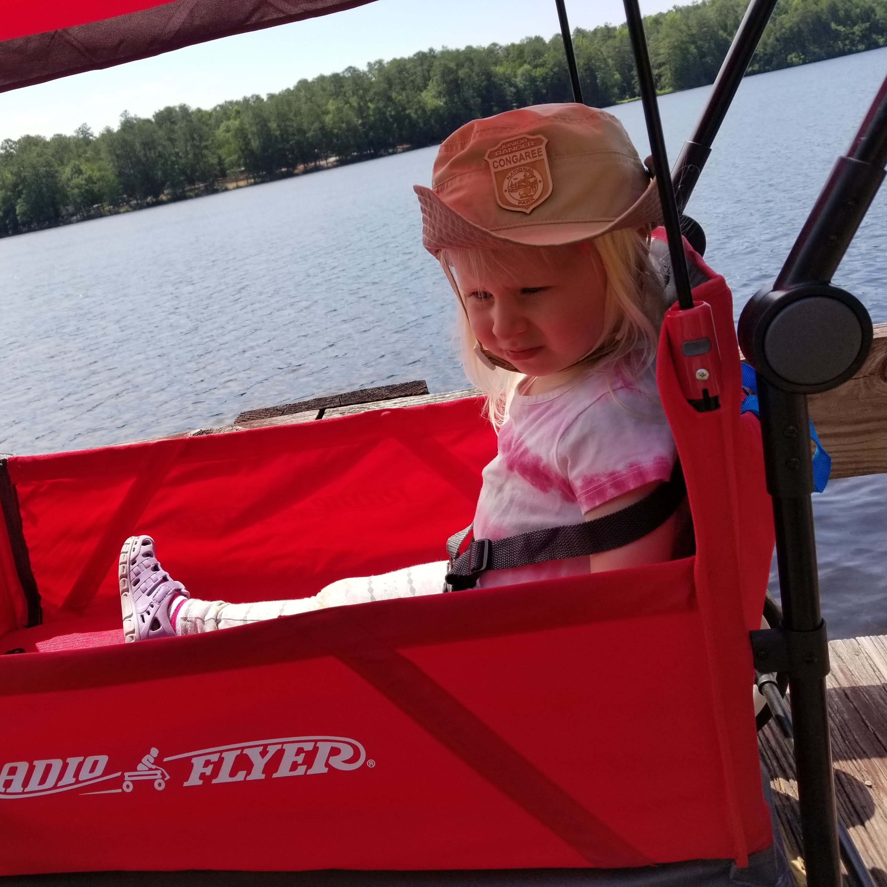 On the boardwalk, Teagan didn’t waste any time finding wildlife. The most popular animal we saw were the baby turtles, just about as big as a sand dollar. No sightings of snakes or gators, though one gentleman reported that he had seen deer at the water’s edge on a previous visit. Sage greatly enjoyed being pushed in what felt like her carriage.