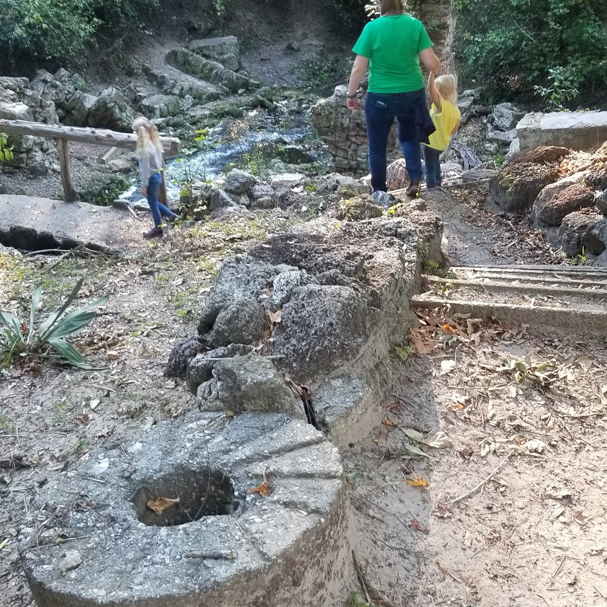 Going back to the geology of the area, the region more broadly is known as the Sandhills. This is because millions of years ago, what is now the middle of SC used to be the edge of the ocean. Millions of years of sea creatures left their shells in the soil. Then, in the 1930s, when the CCC was building Poinsett State Park, they took the soil, laden with these ancient shells, and constructed many structures that we can now see. If you look closely, you can see the tiny shells in the bricks, which is known as coquina.