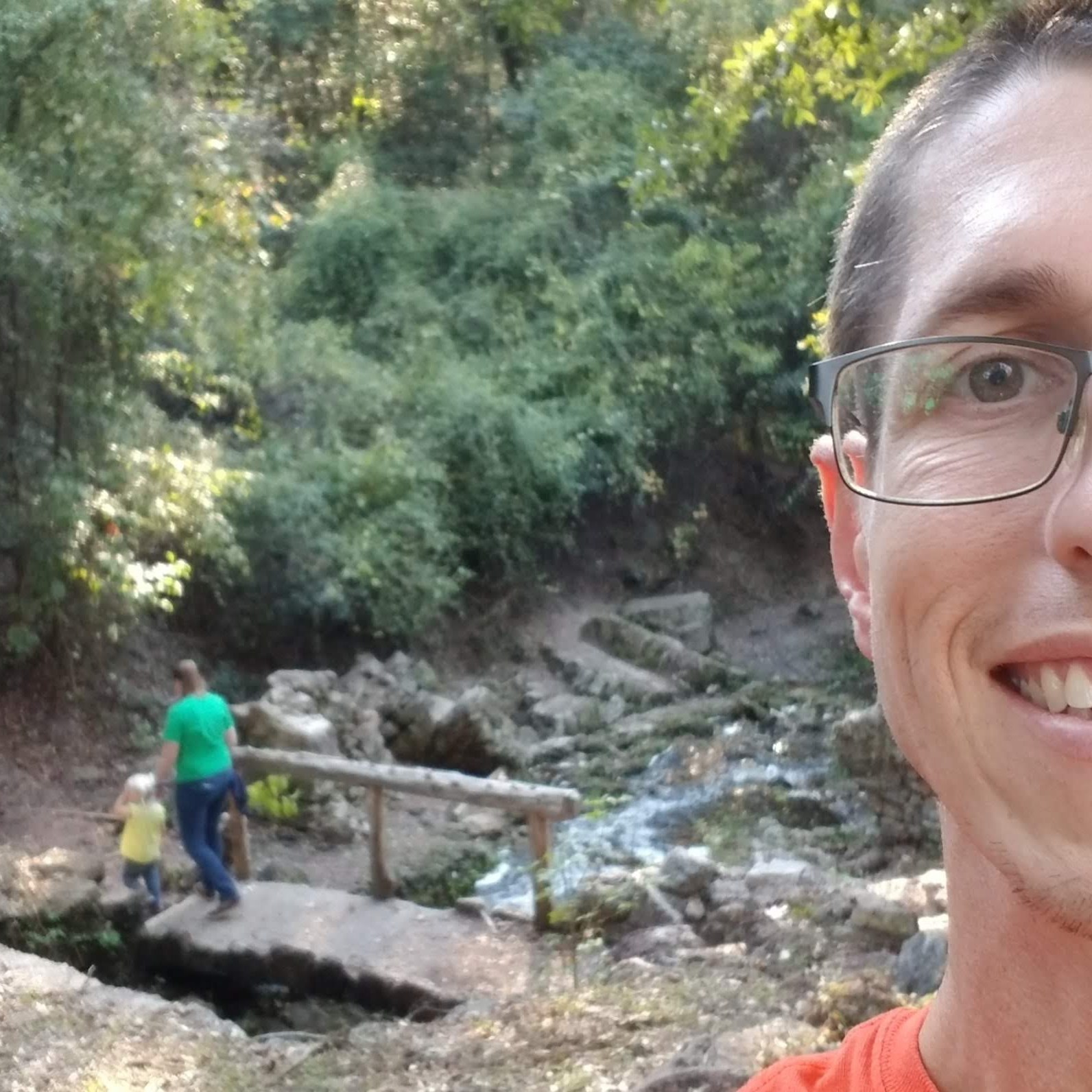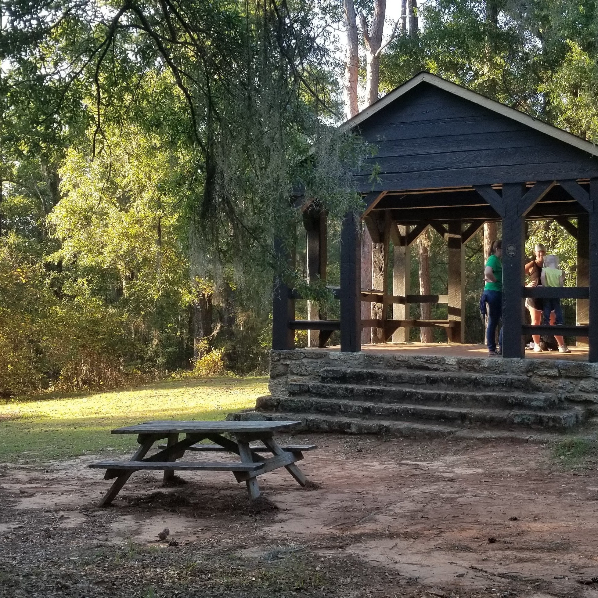 We found the foundation of an old grist mill, played on the playground, and as the sun was setting, we headed up to find a geocache. We parked our car near the geocache, where we saw one other person at a structure overlooking the lowlands below. Turns out, it was one of our good friends from church! She just happened to be there camping for the night. Love a good serendipitous meeting!