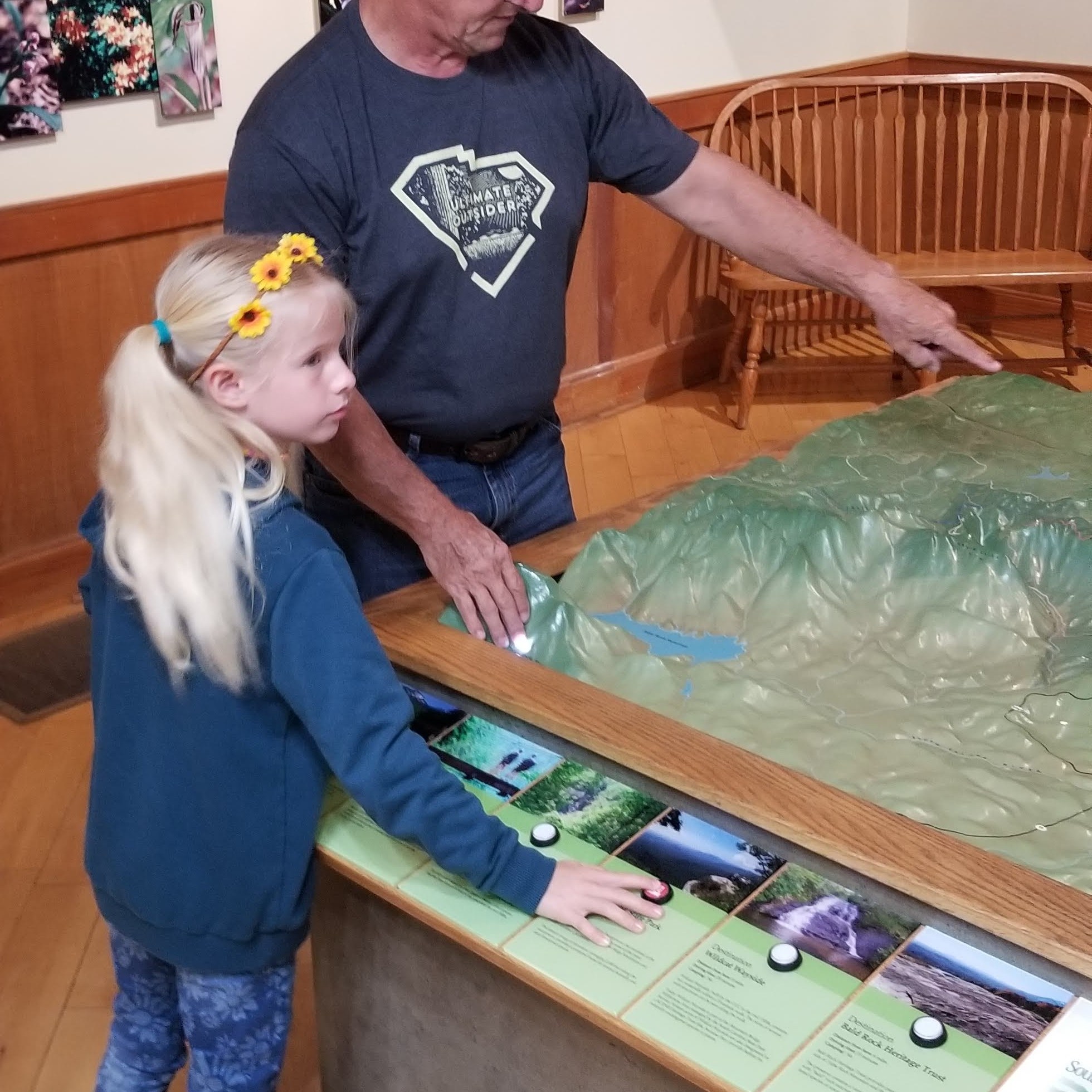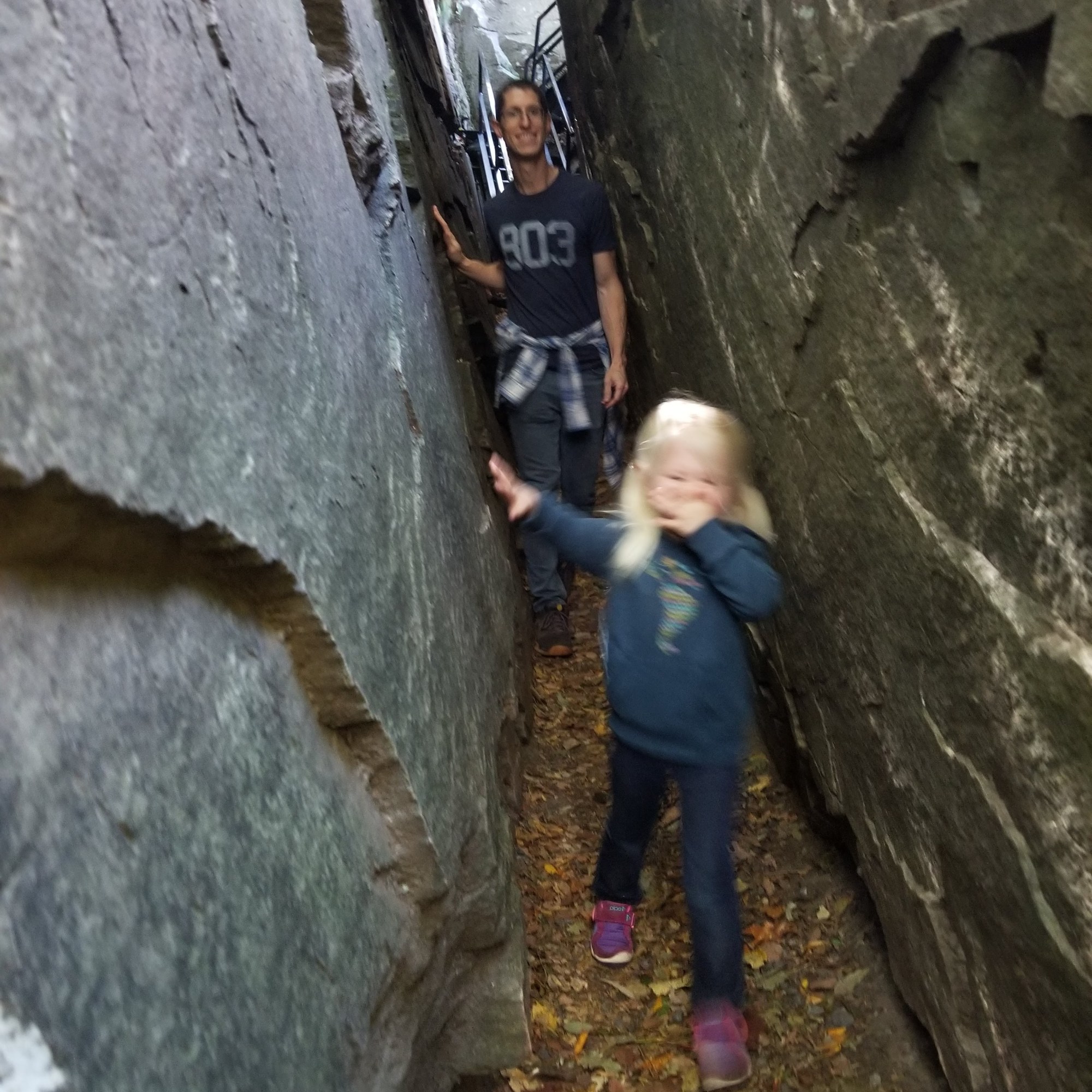 There was a drawing in the Visitor Center that did make it seem like a face was visible, at least to the artist. But what’s less important is that there’s a mystery face. What’s more important is that there are plenty of beautiful things to see. Caesars Head is a great jumping-off point to see waterfalls and hike through beautiful forest. You can actually hike east through the area known as the Mountain Bridge Wilderness Area and end up in Jones Gap State Park. Not with a 7- and 3-year-old in tow, though!