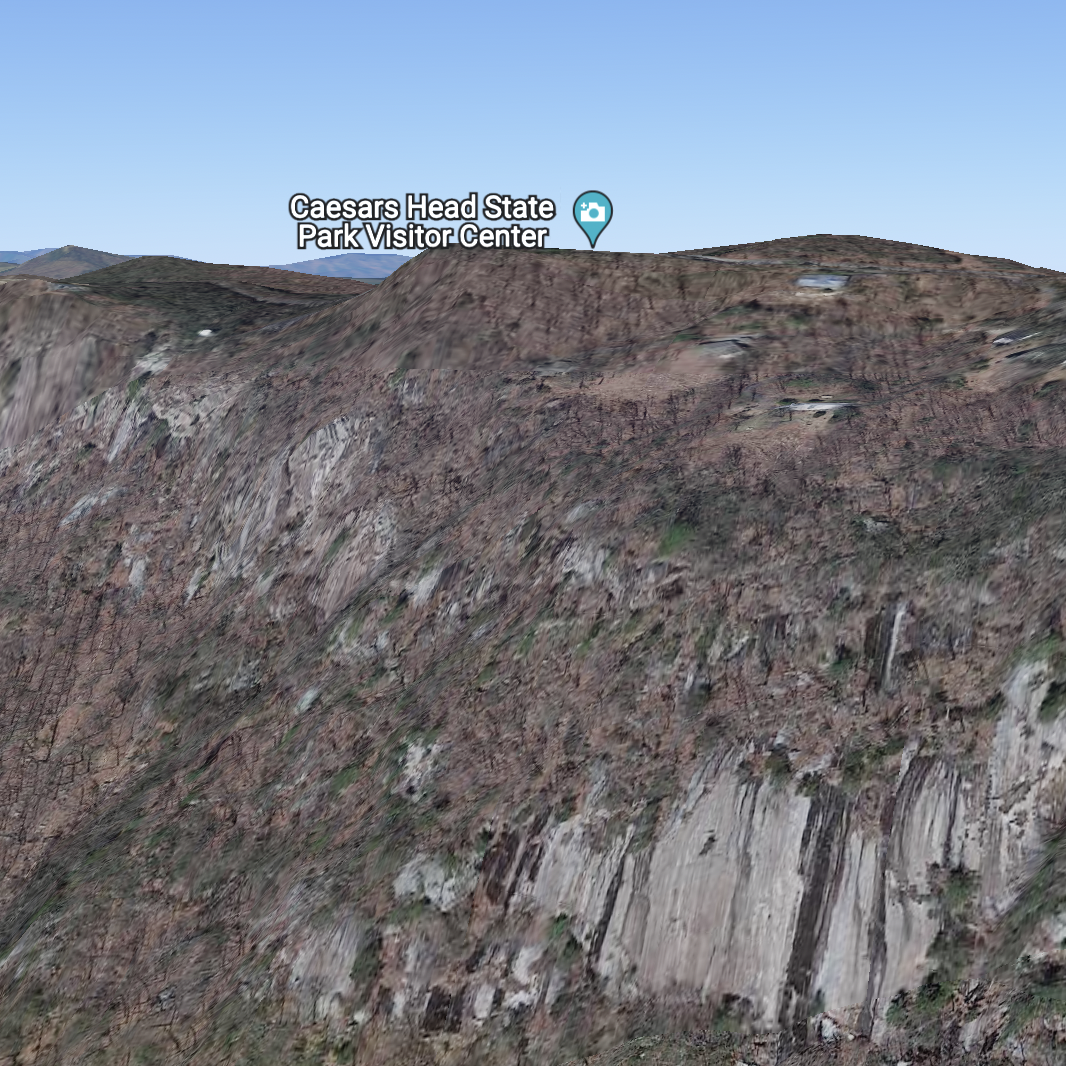 Caesars Head is located at the Blue Ridge Escarpment, ‘escarpment’ meaning a place where the land suddenly rises, like at a plateau’s edge. One moment you’re in the rolling foothills (or, if you want to use the French term, ‘piedmont’, literally ‘foot of the mountain’), and the next moment you find yourself winding up US 178 in a set of horseshoe bends that will make even the strongest stomachs wish you were there yet. (The towns below are at around 1,000-1,100 feet.)