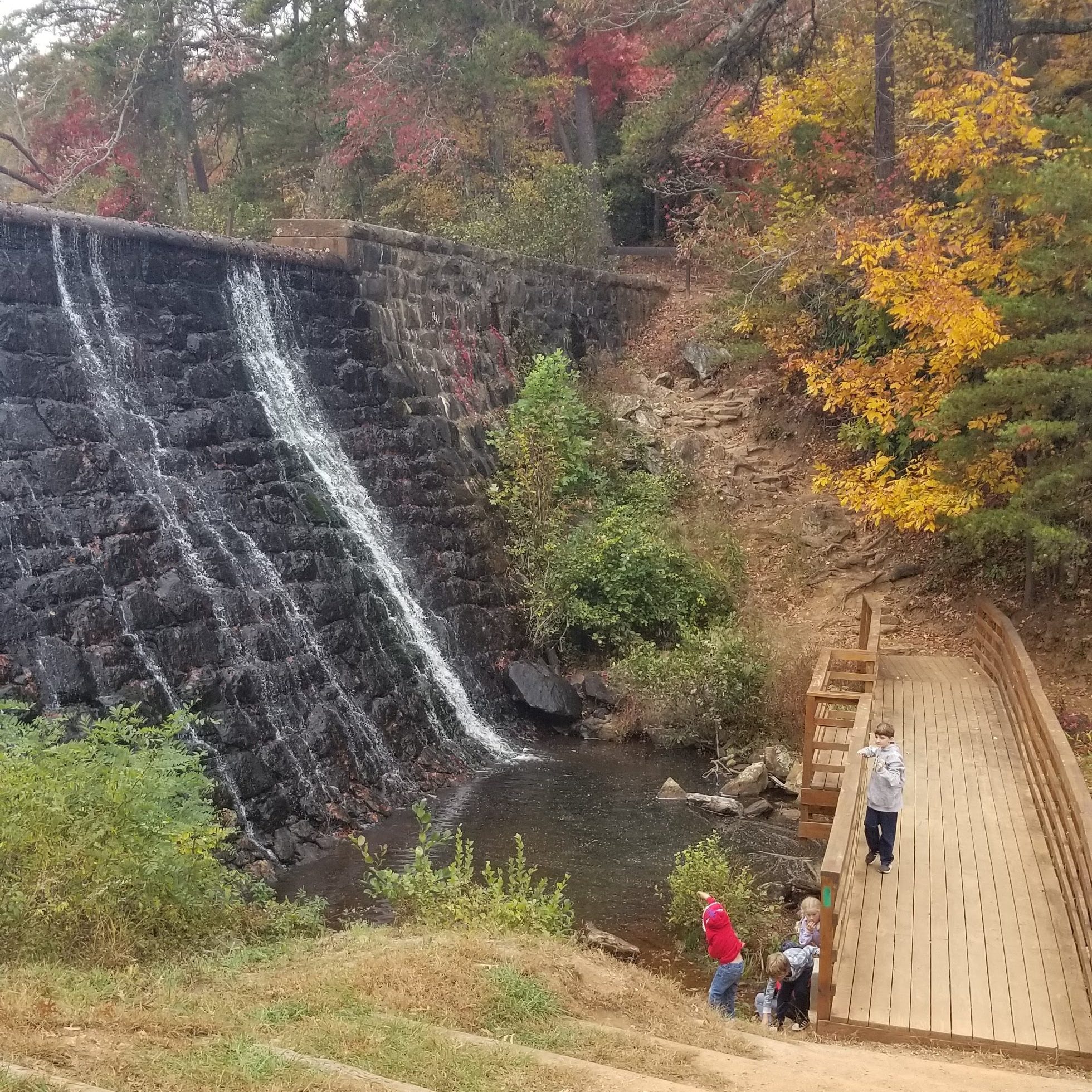 The park itself is big, but with a total of six kids, we confined ourself to the playground area and a 1-mile-ish easy hike around the lake. The kids loved throwing stuff into the lake constantly, and it was neat seeing the dam, built before 1900. We had a nice picnic lunch by the main park office building, overlooking the lake and foliage.