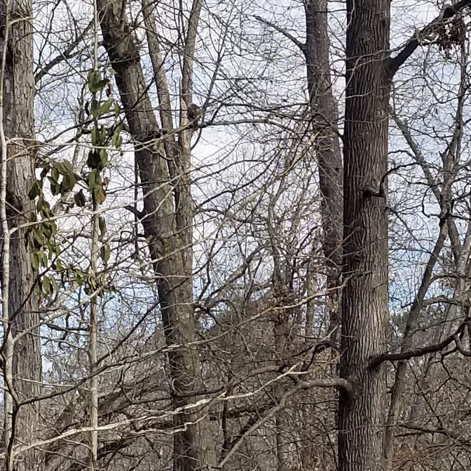 As we drove in, we drove through some beautiful forest, with the beech trees still clinging on to their leaves. As we parked, a red-tailed hawk flew and alighted on a tree right in front of us. Several squirrels were on a neighboring tree, and I thought we were going to get to see some carnage, but the hawk merely sat there for a while without hunting.