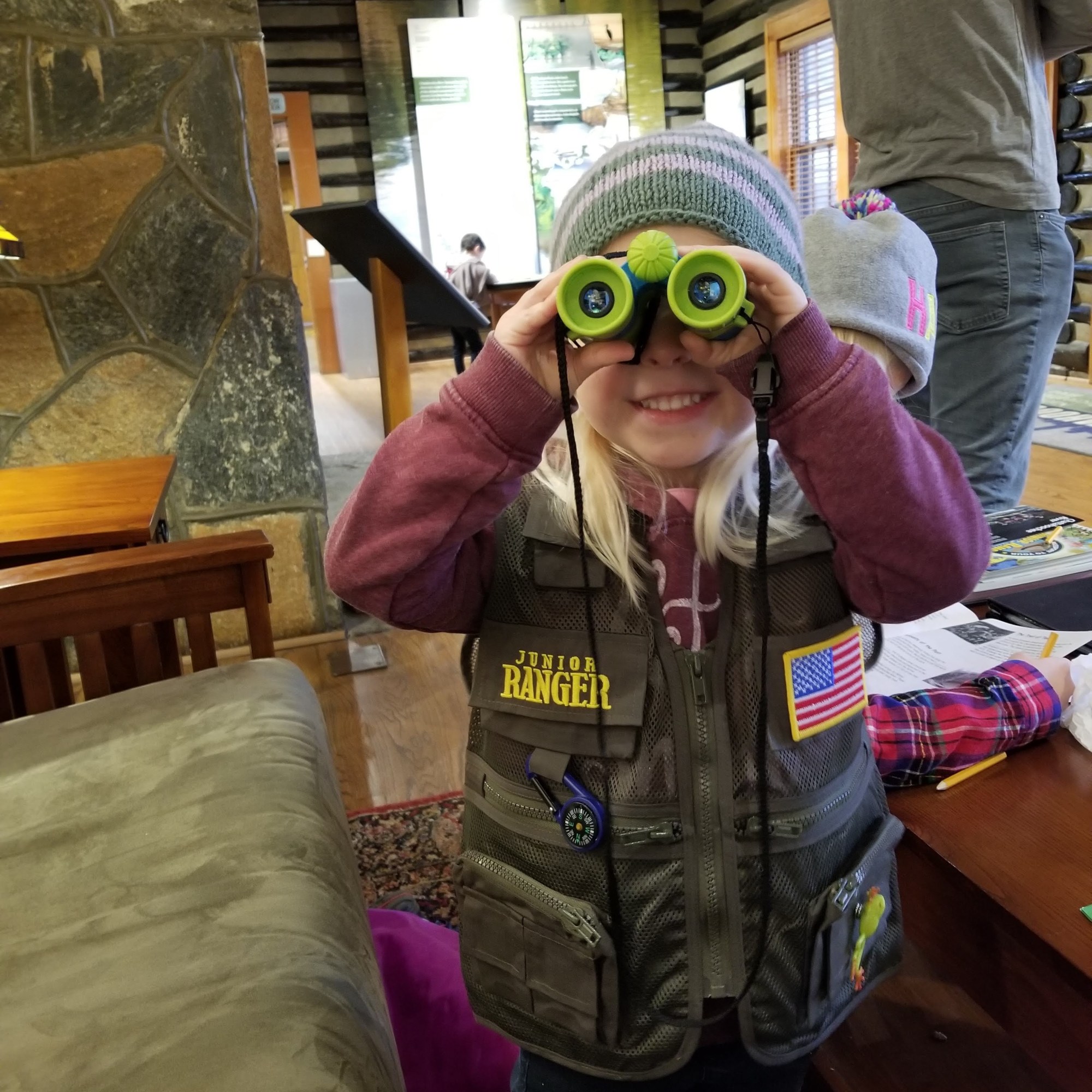 We went inside the visitor center and got the Junior Ranger books for Teagan and Sage. Sage had just gotten her very own Junior Ranger passport and vest, so she is now officially on the quest along with her sister. The activities inside the Junior Ranger books helped them learn about the natural world at the park, some safety tips, and some of the history. After they completed the set number of activities, they were able to collect their badges and become official Junior Rangers (though the ranger on duty didn’t have them say the Junior Ranger pledge).