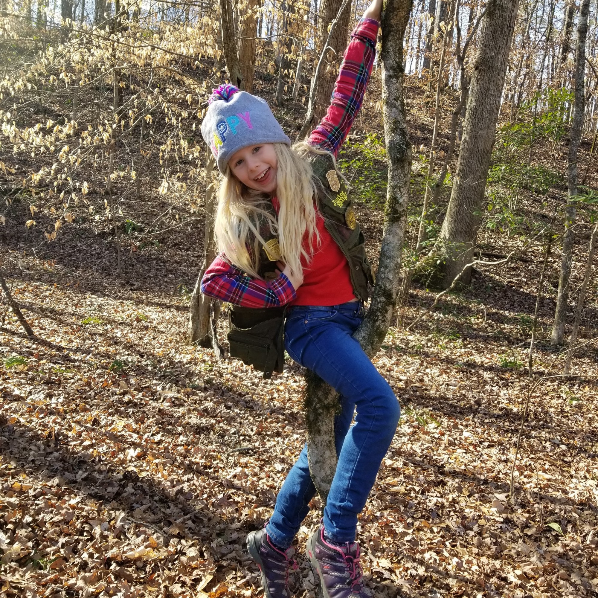 The girls enjoyed playing hide and seek, climbing trees, and playing on the rocks by the river. I spotted a red-headed woodpecker up in a tree top at one point. The water was nice and clear, and I’m sure it was cold!