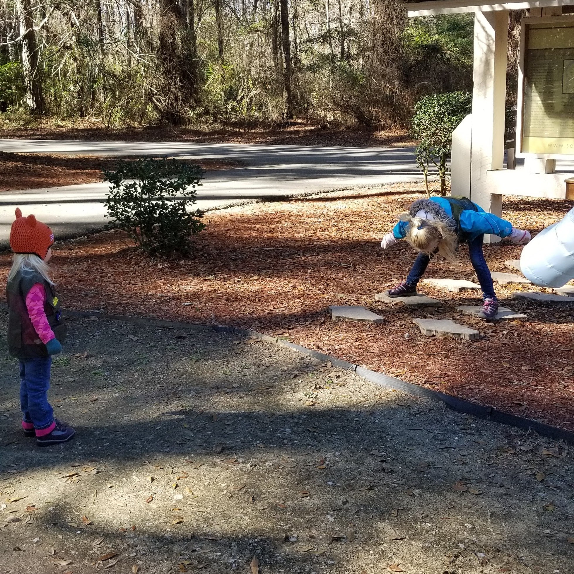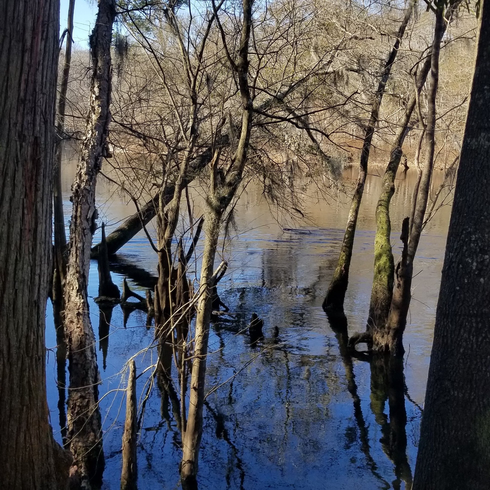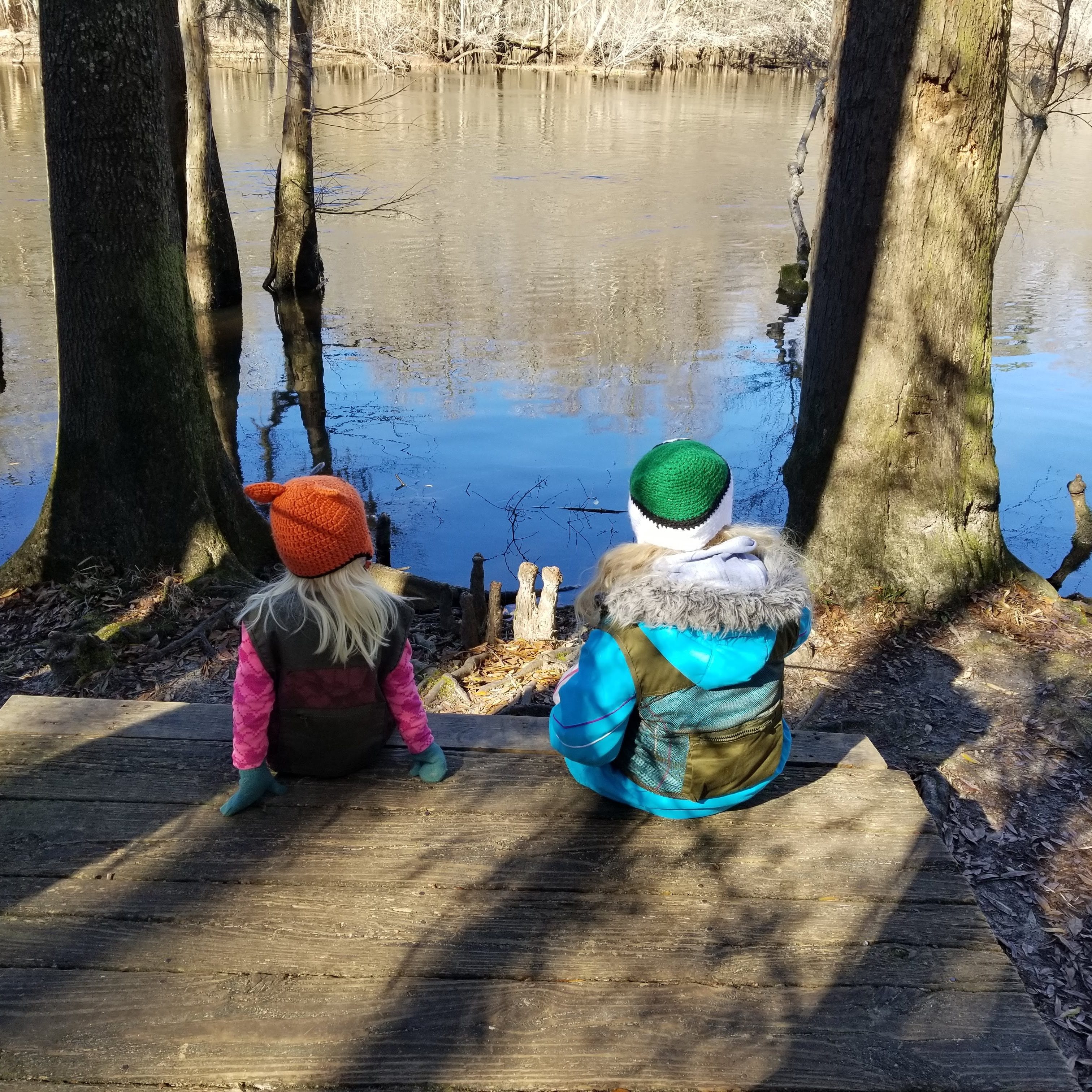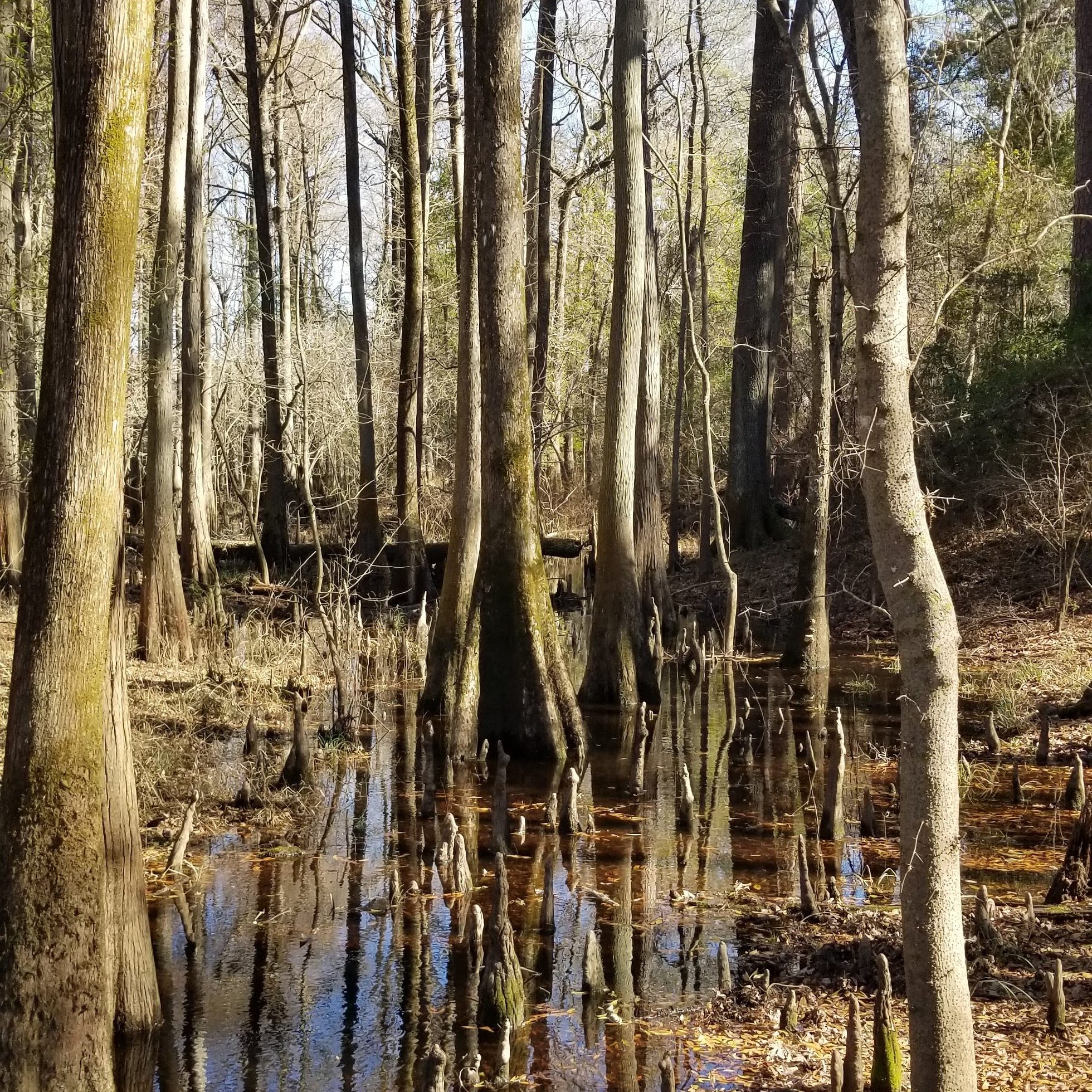 It seems like many people will bring their RV here to camp, and I imagine that if they also have canoes/kayaks, it would make for a nice weekend. We didn’t spend a lot of time here, even bypassing the playground since we had two other parks to visit. The main thing we did was walk the short trail, which went through some pine forest, by cypress trees, and to the river. We found a geocache as well. There is a big open field, which would make for a nice kickball game.