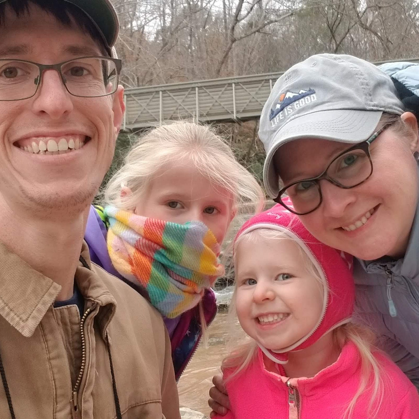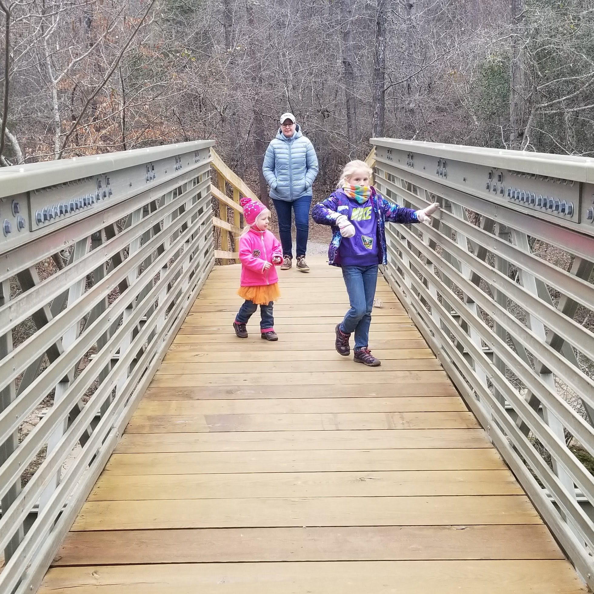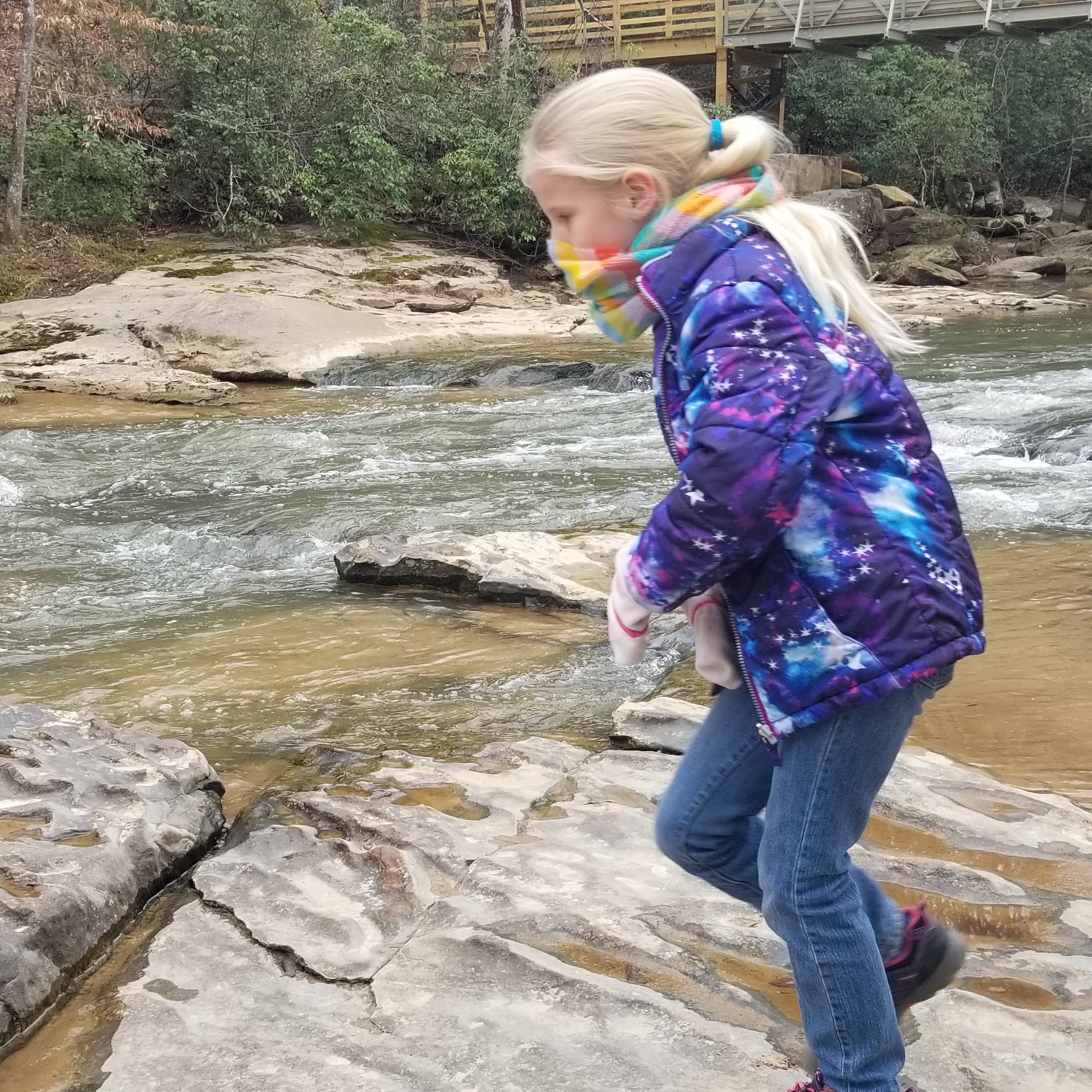 We picked a trail that would take us to the longest trail bridge in the state park system, recently completed last summer. The creek it flowed over was beautiful, and I now am curious about the rock formations along the creek bed.