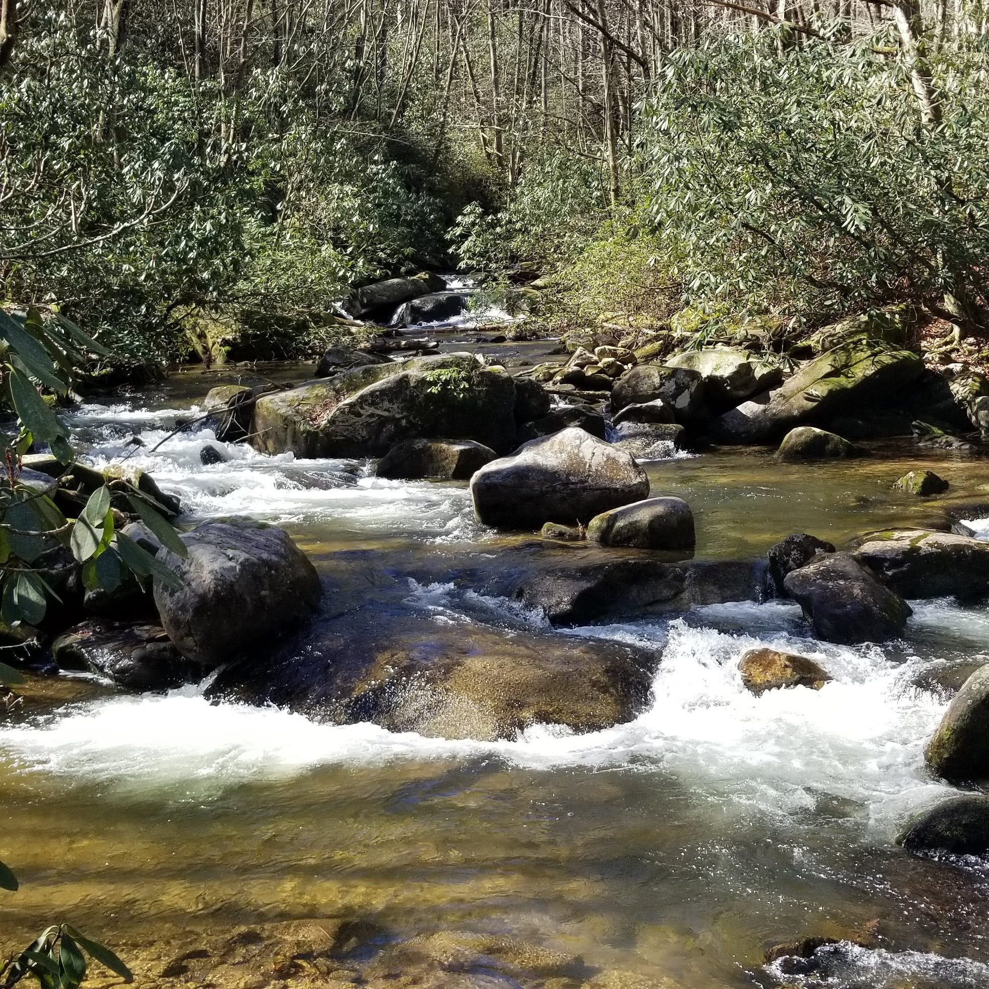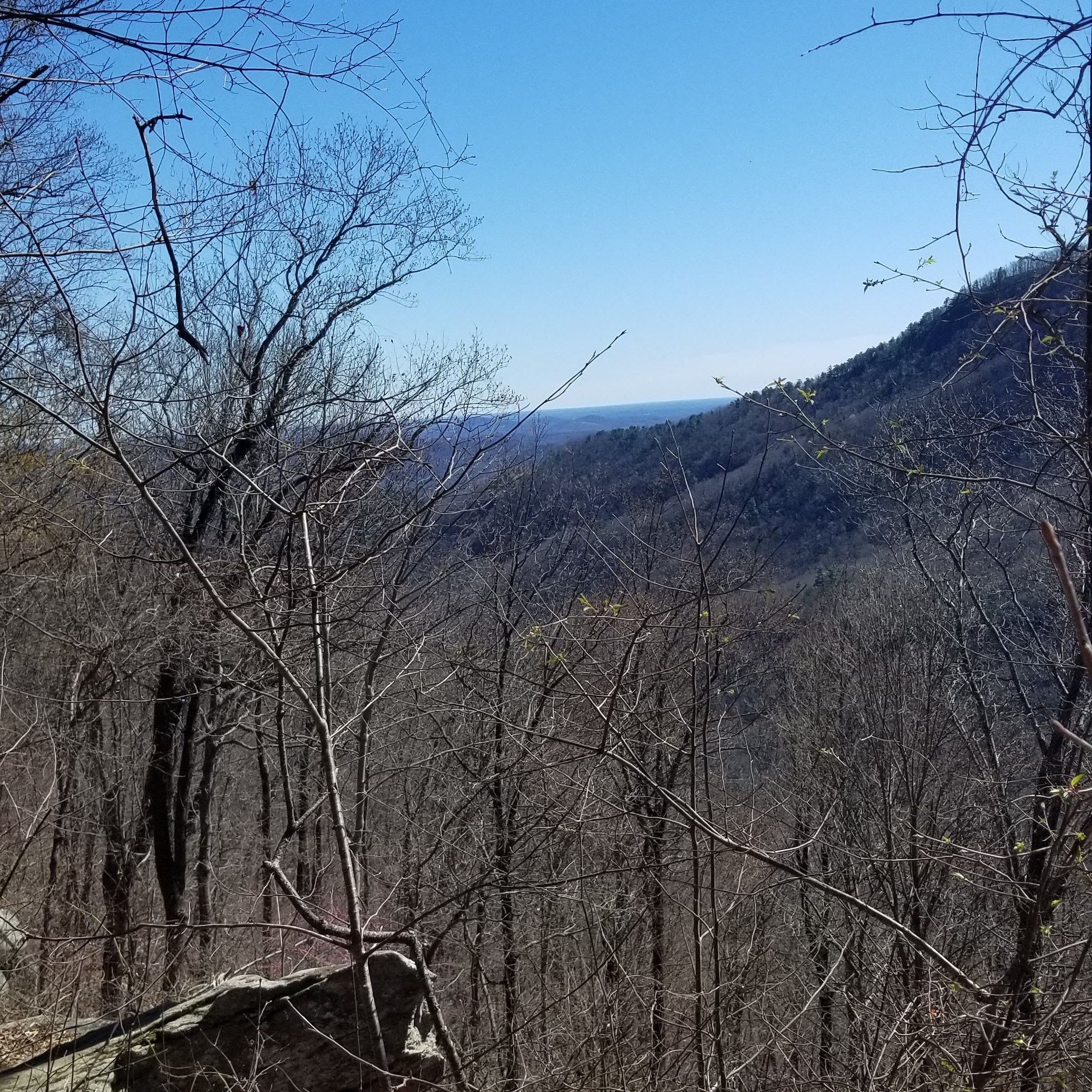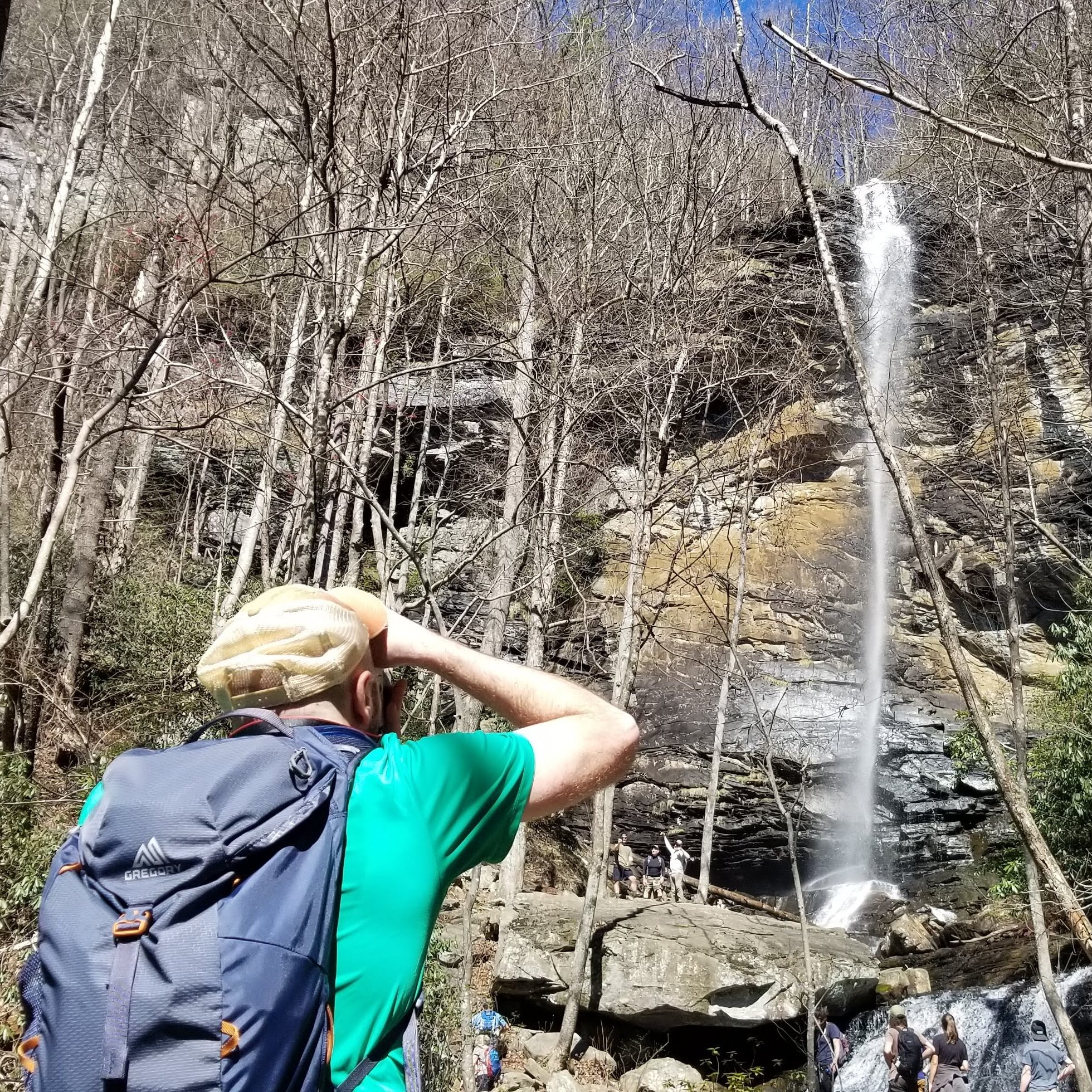 Josh and I hiked the Rainbow Falls trail. It was a perfect day for a hike. Rain had just moved through, so the sky was so blue, and the weather just topped out in the 60s. The trees were just beginning the early stages of budding out.