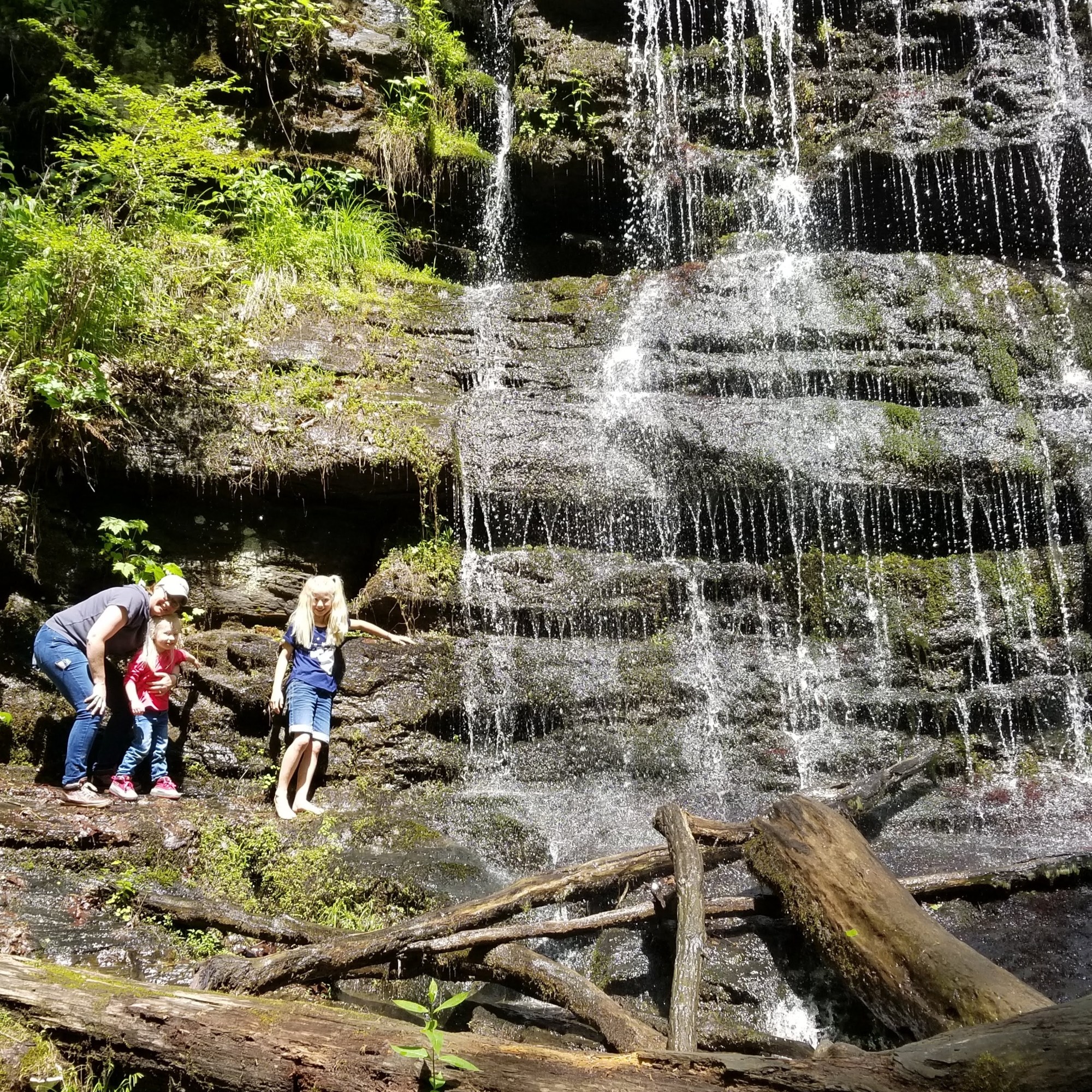 The falls themselves were beautiful. The official site notes that there are several species of endangered plant life here. Teagan noted that it was like being in a tropical rainforest. I remember a beautiful dragonfly flying by and a cute little moth that alighted on some of our stuff. The girls both loved getting up close to the falls, not minding that the water was quite cool!