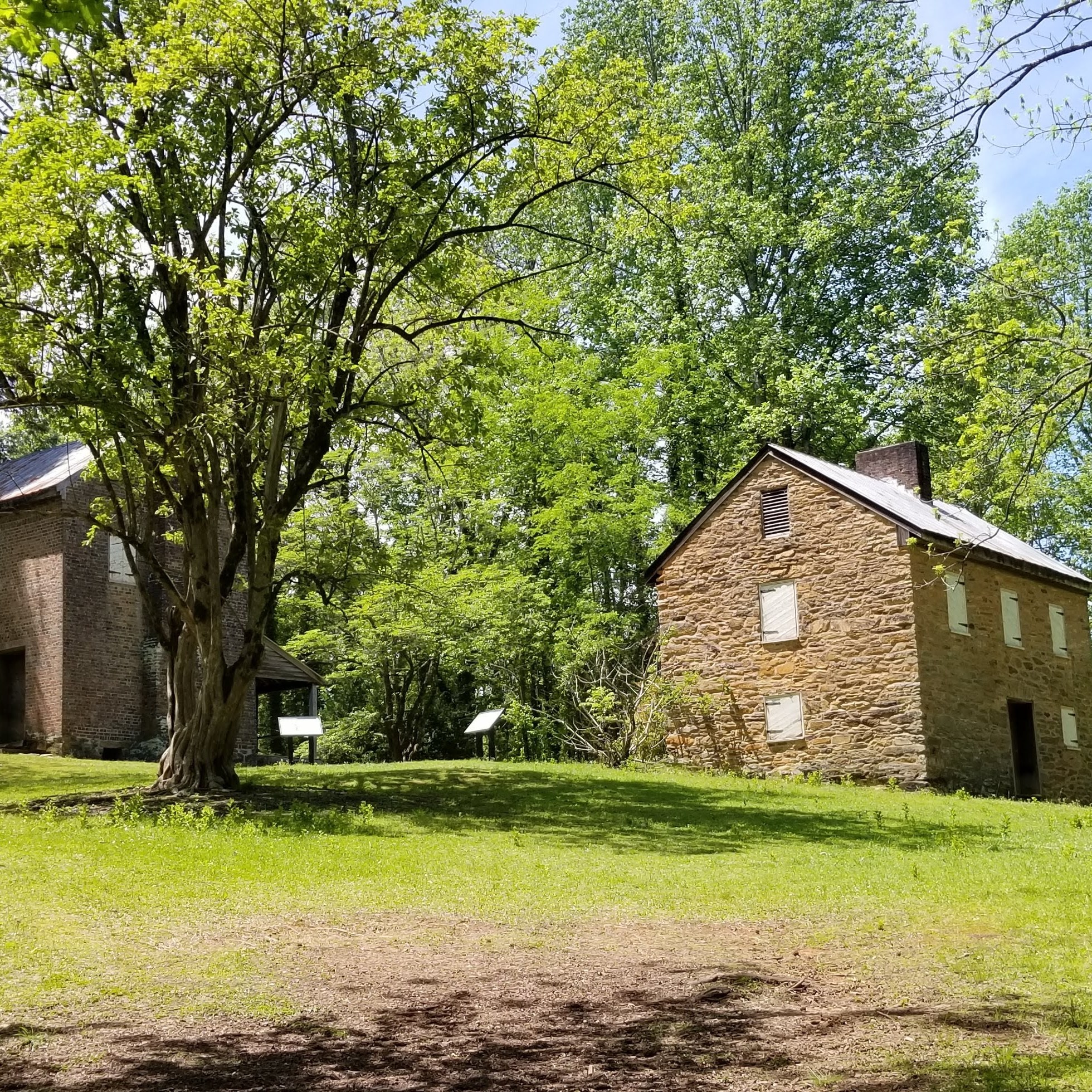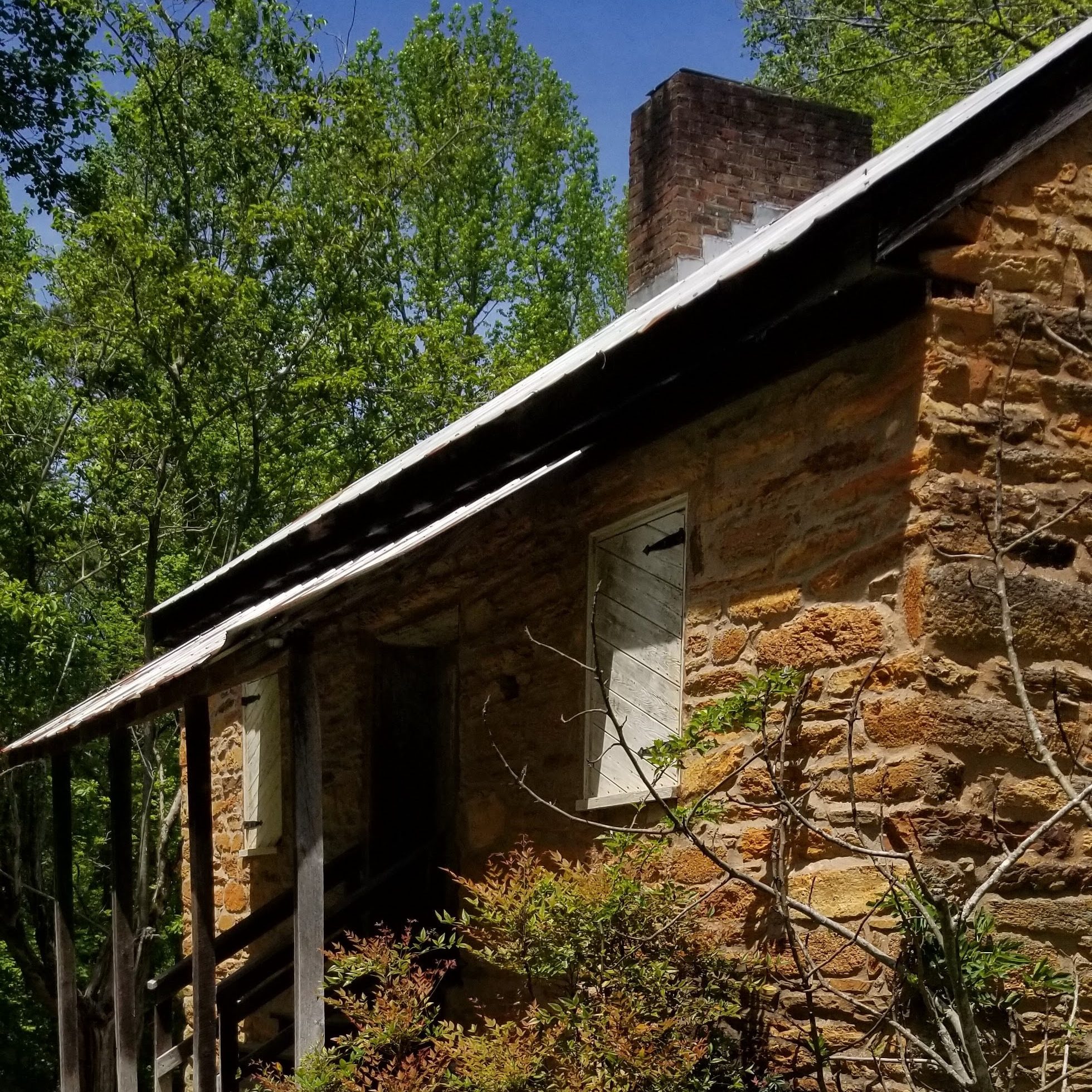 We reunited with Bunny and went right across the road to the historical buildings. The stone building dates to the late 18th century, and the brick residence is from the early 19th century. The first building was originally intended to serve a military garrison who protected the settlers from the Cherokee. The brick building next door served as a trading post to settlers. The nearby interpretive sign noted that the owner of the building was obviously more well-off economically, as bricks would have cost significantly more than the traditional logs used for most buildings at the time. The stone building was locked, but we could walk in the brick building. I imagine the stories those walls could tell.