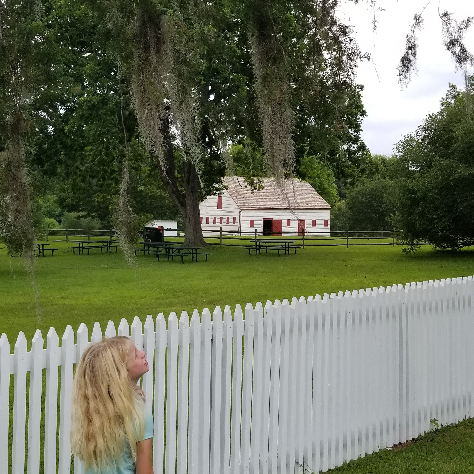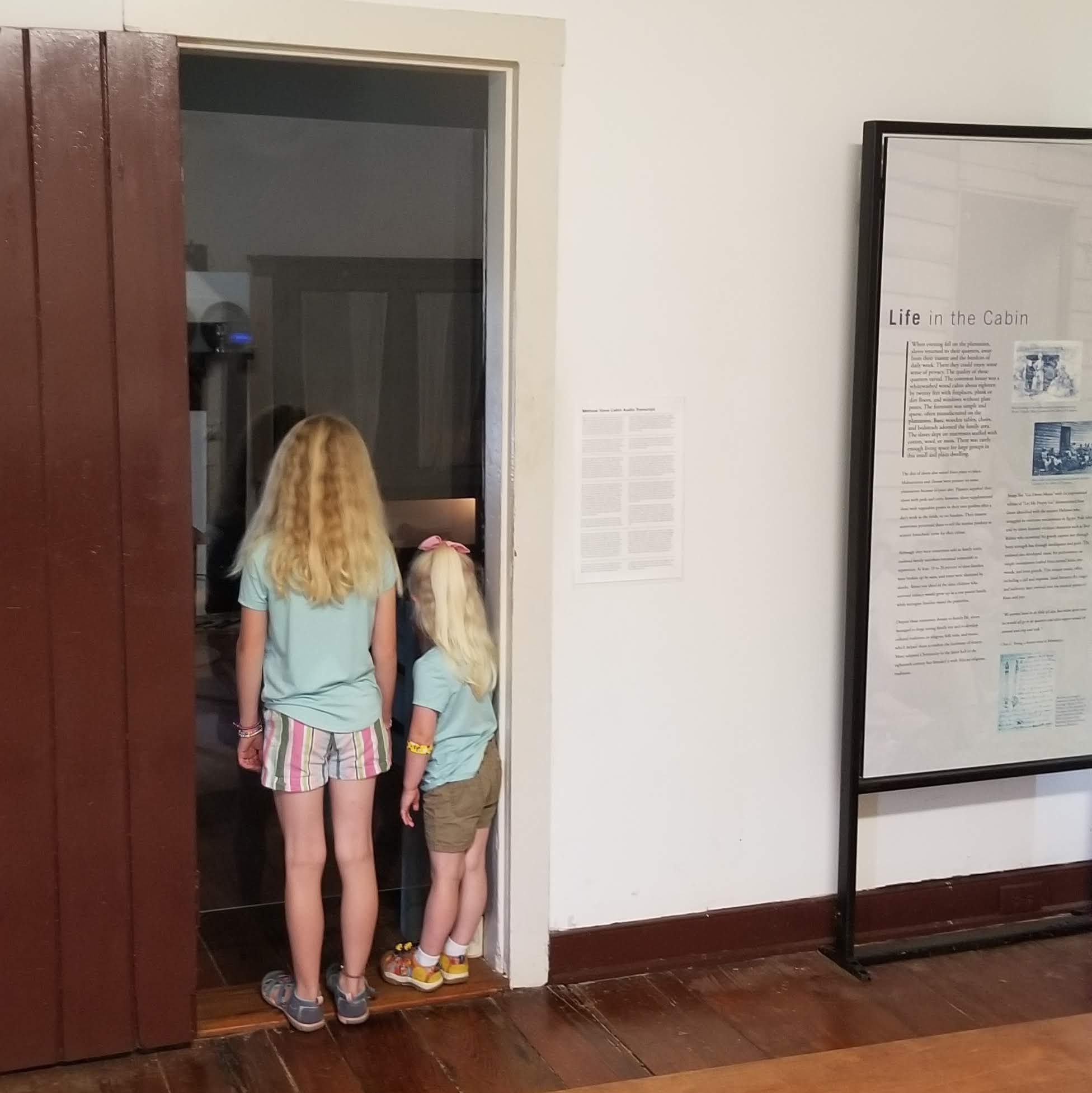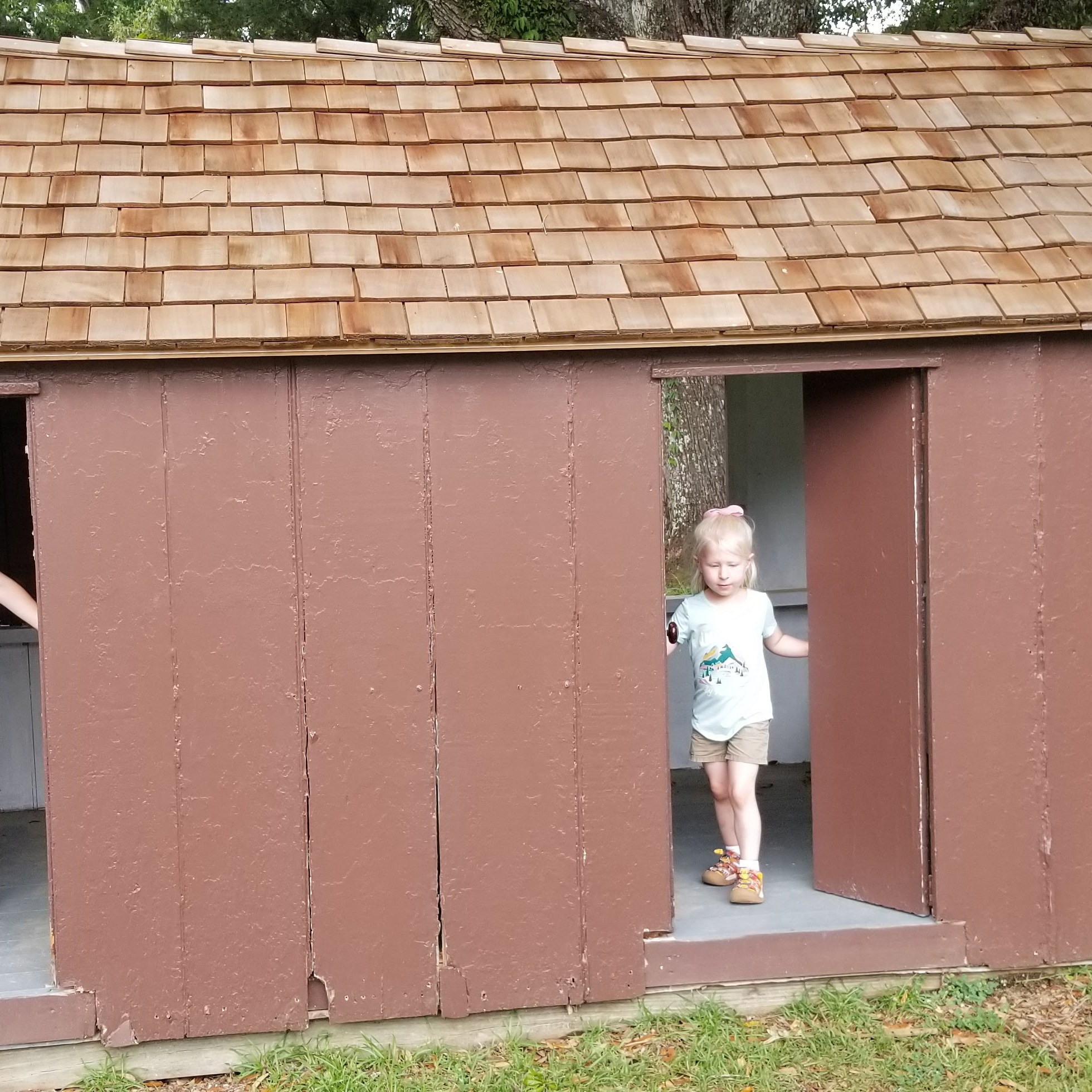 We ended up at Melrose, a former estate home of the prominent McMurran family in the early- to mid-1800s. They owned multiple cotton plantations, of course implying that they also owned slaves. The Melrose grounds still have some of the slave dwellings still standing, along with several other out-buildings. The girls and I got out to explore some, while Tiffany read the unigrid (park pamphlet) and napped in the car. We didn’t pay for a tour of the main house.