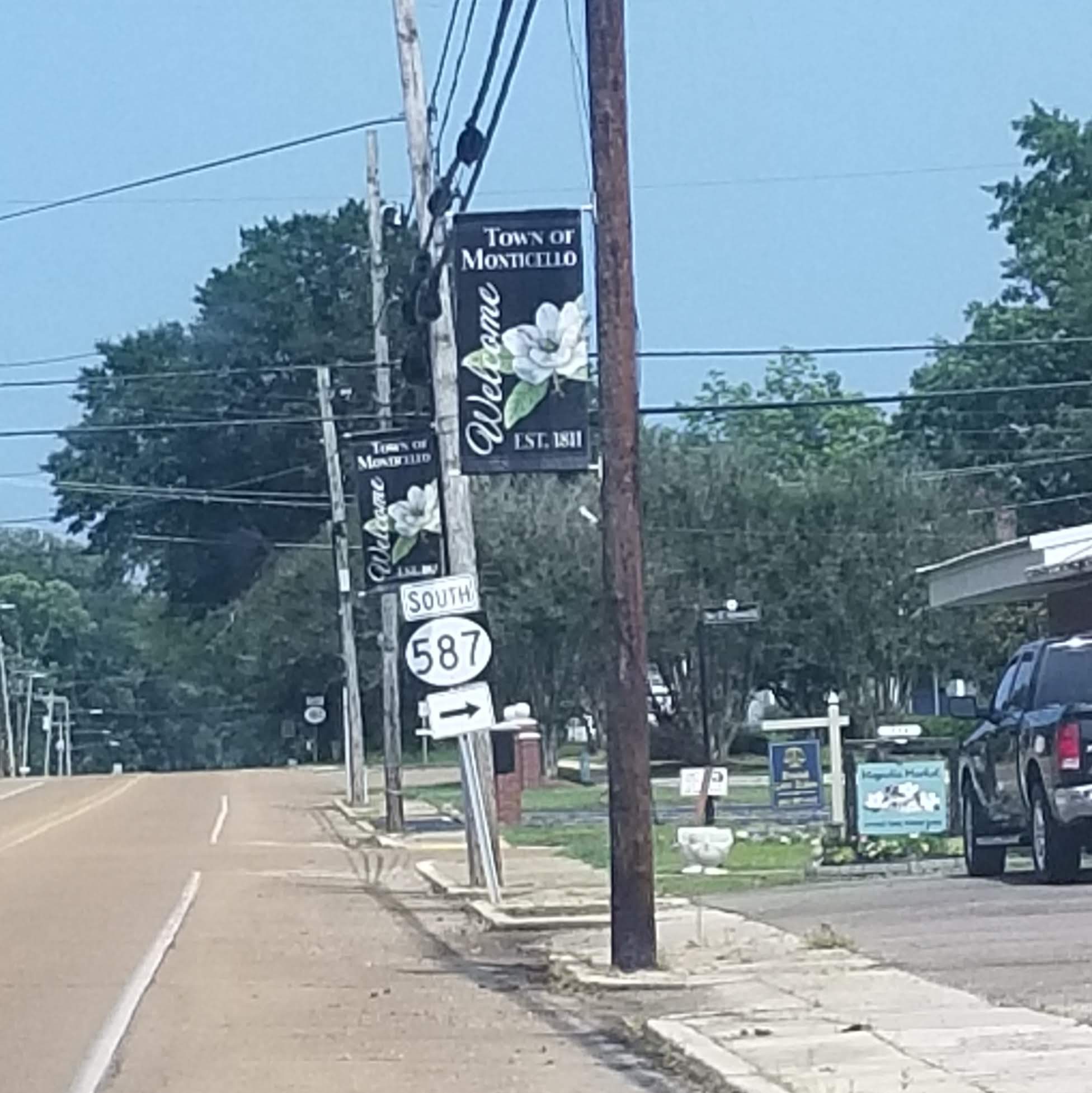 When I realized that our route from Natchez to Hattiesburg (where my dad’s family reunion was–the main reason for our trip) was going to take us through Monticello, I decided to intentionally drive by a few places.