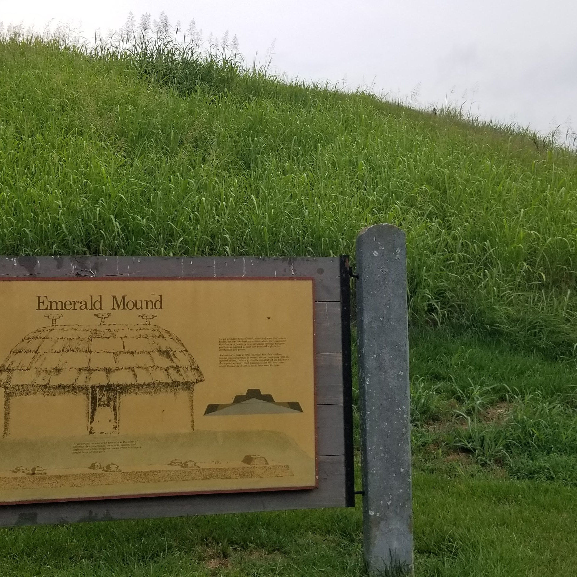 On the 15th (Sage’s illness having then passed to Tiffany), we hit the road towards Natchez. We stopped at a couple of sites, but the one that most impressed me was Emerald Mound. I had only heard about Native American (specifically the Mississippian peoples’) mounds within the past year or two. We visited one on our trip to Santee State Park and vicinity back in SC. Emerald Mound is much bigger.