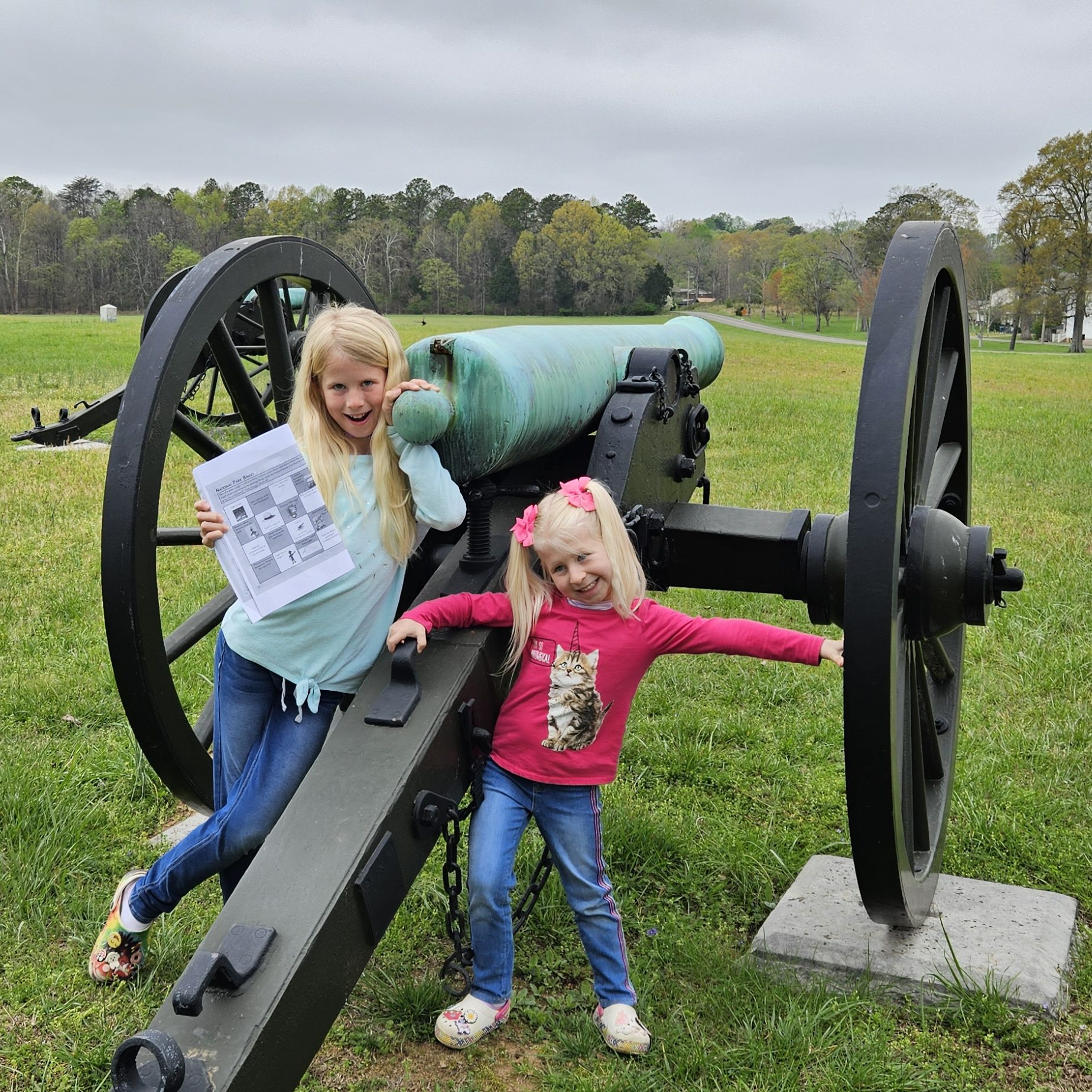 At Chickamauga we first stopped at the Visitors Center, where we looked around the museum and the girls finished up their Junior Ranger booklets. Teagan learned about different types of guns, and Sage got to see a couple of cannonballs that had gotten lodged in tree trunks. Tiffany realized that a nickname her grandfather had given her has its roots in the namesake of a hill located on this battlefield.