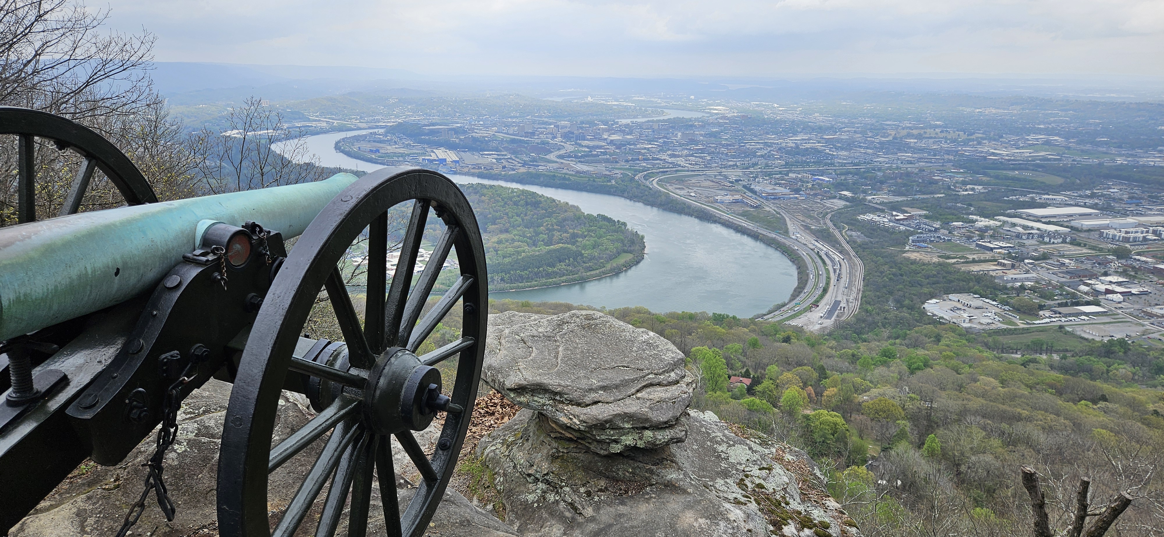 But as impressive as the painting was, what’s more impressive are the views from Point Park, which is the area of the park right at the northern tip of the mountain. It’s $10 for adults to enter, but it’s worth it. Within the park are some artifacts, memorials, and other buildings to hike to. If you go, take advantage of the views to see where some of the other fighting would have occurred, such as at Missionary Ridge and Orchard Knob. Also prominent is Moccasin Bend, an area of land in a bend in the river that looks like a Native American moccasin. We would briefly visit this area later in the day.