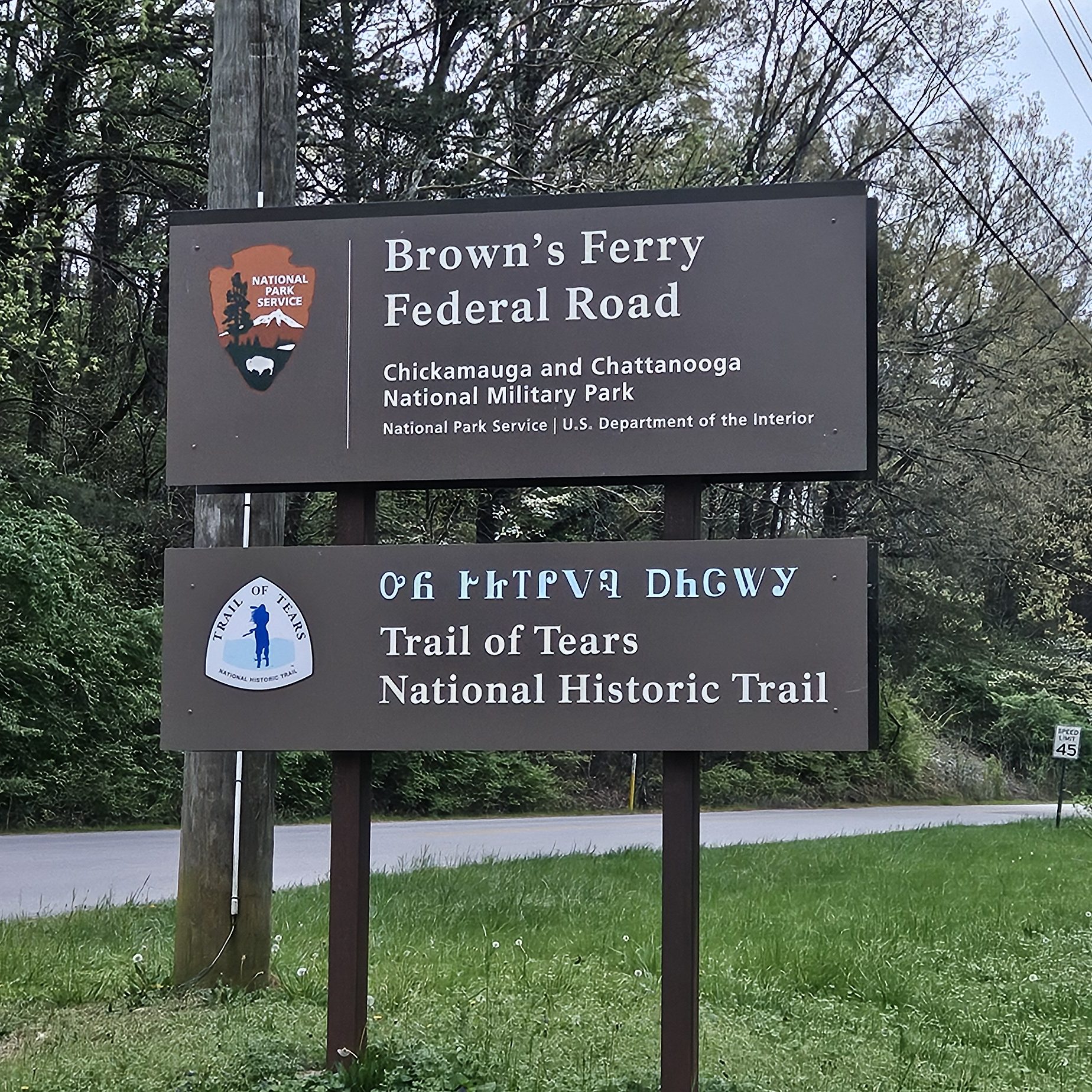 Earlier in the day, as we drove up I-75, we passed New Echota State Historic Site, which is the site of the former Cherokee capital of New Echota. If you pay attention to the place names in this area, it is obvious that this was Cherokee territory. As we left the park at Chickamauga, we drove up Lafayette Road, which is also the route of the original Trail of Tears from the 1830s, when the Cherokee were rounded up and sent out west to live in their new home.