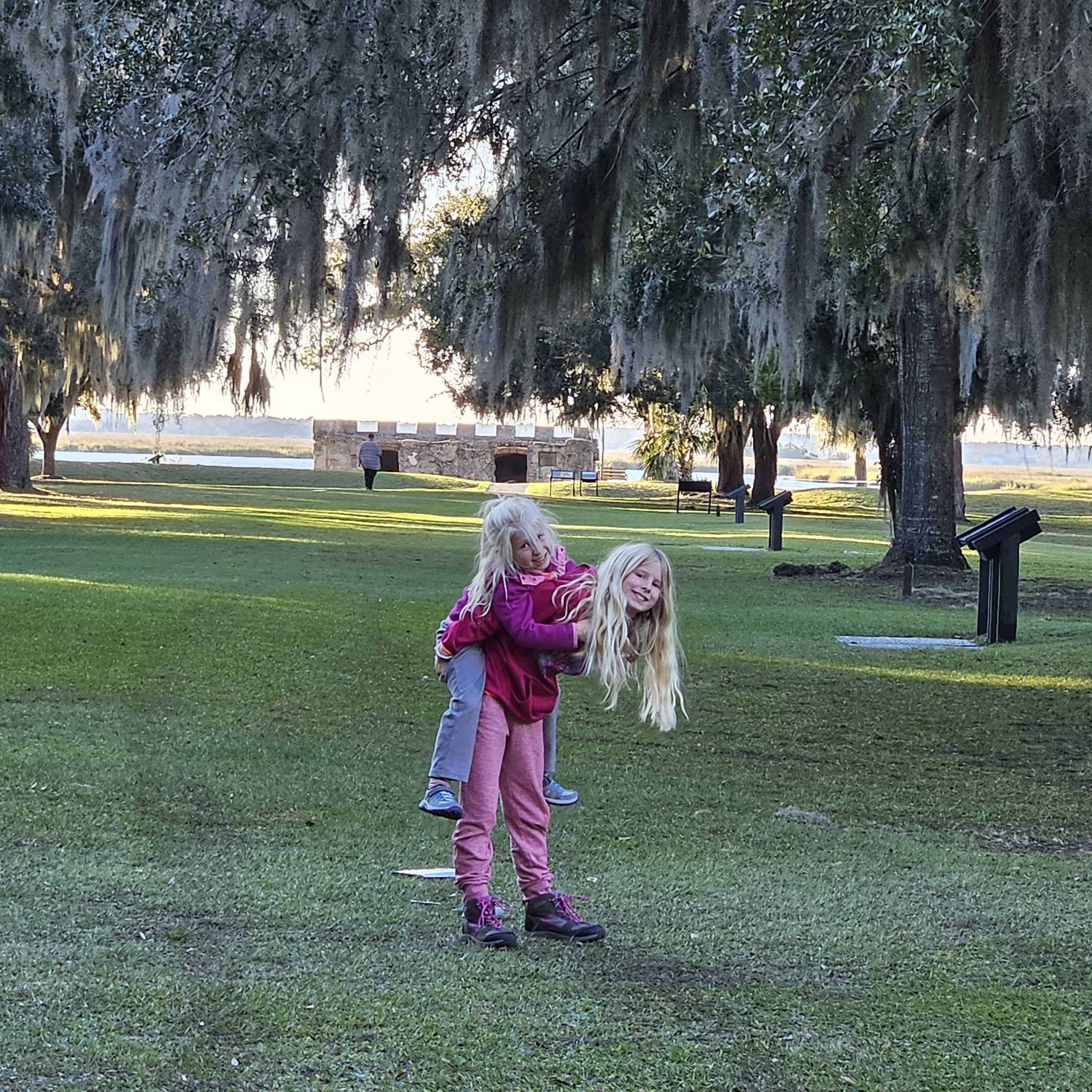 After enjoying a beautiful day at Fort Pulaski, we arrived at Fort Frederica in the late afternoon. This is an 18th-century era fort located on the north part of St. Simons Island, outside of Brunswick. I was excited to visit here due to the history behind it, and I hope Teagan will take some of it to heart as she prepares her Florida presentation later this school year.