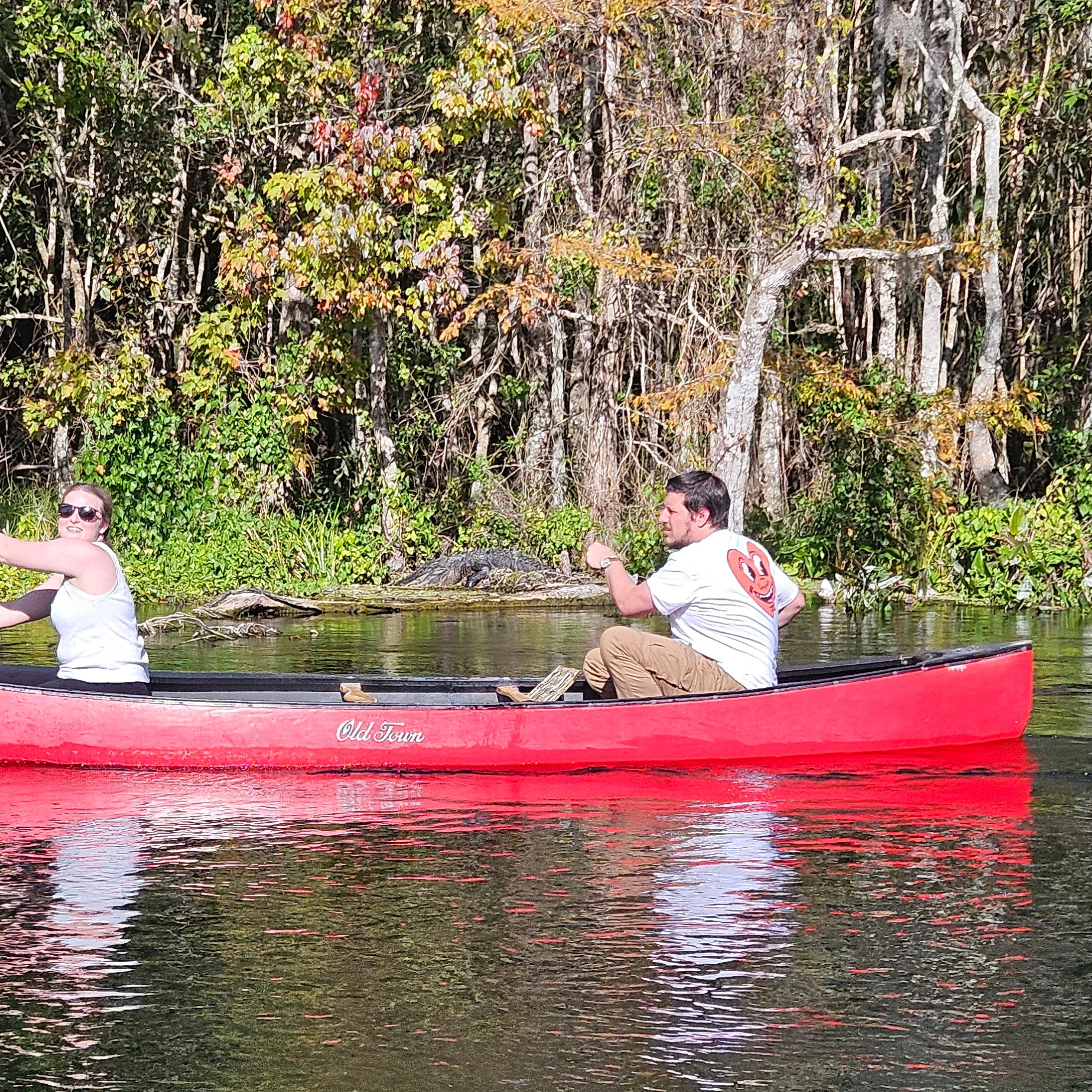 Teagan had been hoping to see manatees, and so we booked a 90-minute tour in a boat in hopes of seeing some. After an initial hike (in which we saw a gator with a captured snake in its mouth) and a picnic, we headed to the boats. The tour was so great, seeing beautiful fish and plants underwater and being amazed at the springs themselves. We never saw any of the monkeys that escaped there decades ago and then populated the area.