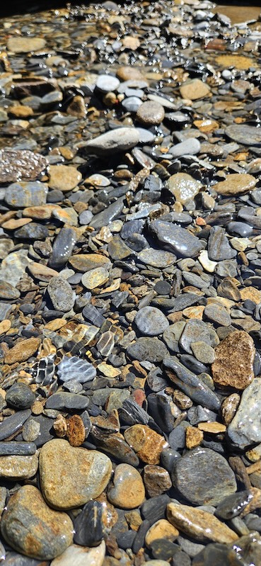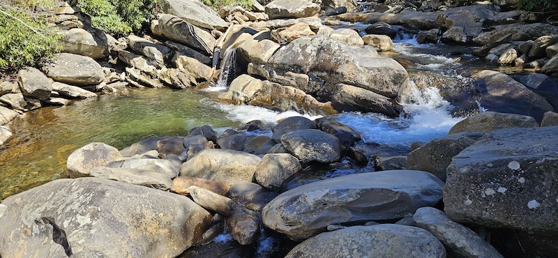 The drive itself is great…but there were just so. many. people. I’ve heard some say that to really experience the park without people, you have to hike several miles out. That wasn’t in the cards today, but we did stop at the Chimneys area to walk a bit. We didn’t get too far, as we found a stream with lots of boulders. A lot of fun was had here, and Teagan did manage to get one leg+shoe wet.